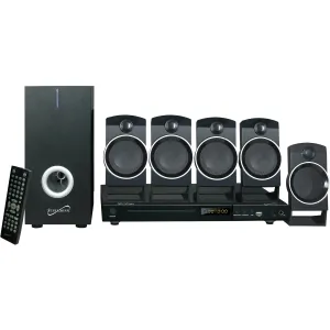 5.1 Channel DVD Home Theater System with USB Input & Karaoke Function supports DVD/CD/VCD /SVCD/MP3/ Picture CD/ CD-R/ CD-RW, Built-in USB Input, 1 Karaoke Microphone Jack, Video output CVBS/S-Video/ YPbPr, Speaker Output: 10W + 3W x 5 = 25W, Power Consumption 45W, LCD Front Display, NTSC/PAL System Compatibility, Supports Different Language Sound Tracks and Language Captions/ 32 Subtitles, Multi-Angle Viewing with Digital Zoom Support, Intelligent Firmware Upgrading, Multi-Level Fast Forward and Backward Scan, Programmed and Memory Playback, Compatible with All Disc Zone (Multi-Zone), Multi Languages OSD, Power Supply: AC 110V, 60Hz, Remote Control and AV cables included.