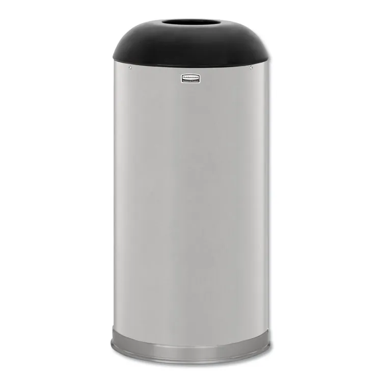 This satin stainless steel dome top receptacle is designed for durability and elegance in any setting. With a 15-gallon capacity, it is ideal for both indoor and outdoor use. The rounded design not only enhances aesthetics but also provides easy access for waste disposal.