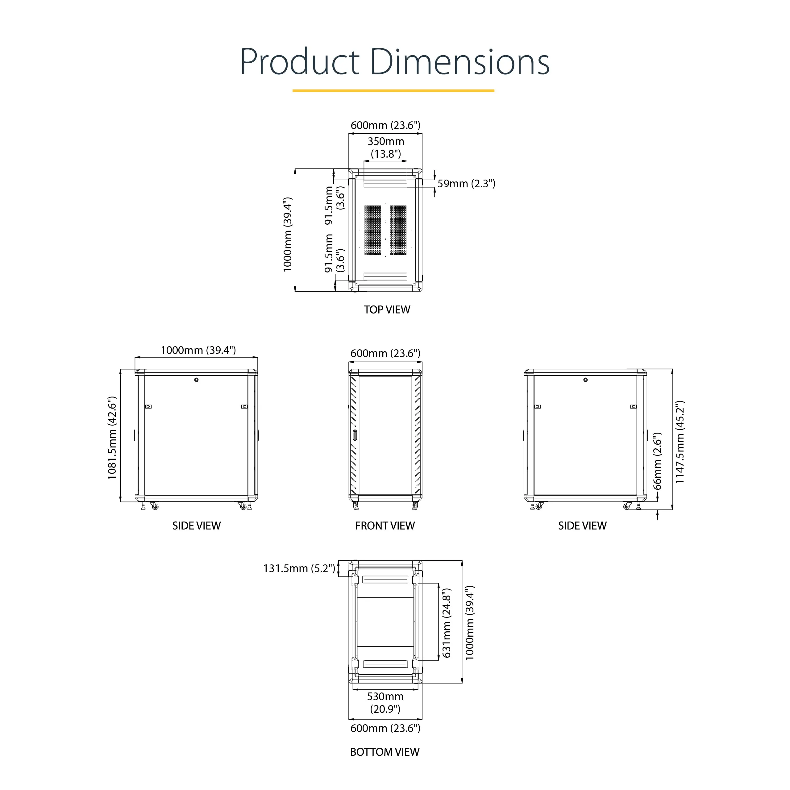 COMPLIANT - 22U DATA CABINET SHIPS FLAT-PACKED - 46.6IN (118,3CM) IN HEIGHT; 17