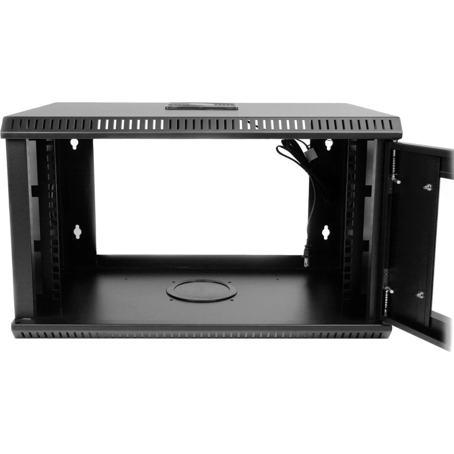 Easily fasten your network and telecom equipment to a wall with this sturdy, lockable wall mount 6U server rack The StarTech.com RK619WALL Wall Mounted 6U Server Rack/Cabinet can be fastened to most types of walls and features a sturdy, compact design that can be positioned almost anywhere without wasting valuable floor space. This equipment rack offers 6U of storage space and is designed to accommodate 19-inch (wide) servers, networking and telecom equipment. The rack features a 12cm fan, with ventilation positioned above and below the front panel glass door, helping to keep dust out of the rack while ensuring a cool operating environment for your valuable equipment. To ensure optimum security and prevent tampering with the enclosed equipment, the cabinet/rack features a lockable, smoked acrylic front door that can be removed entirely or installed to open to the left or right as needed.