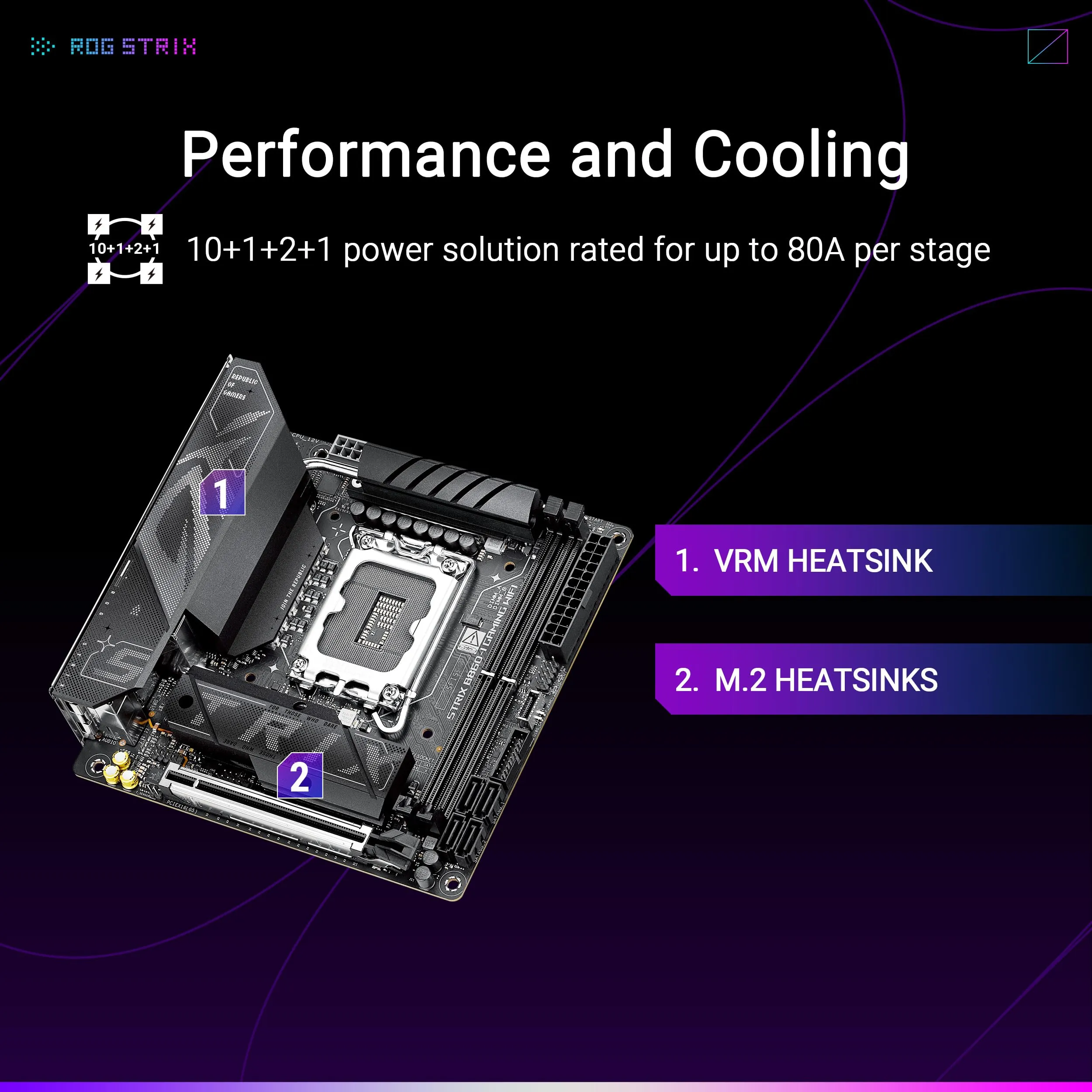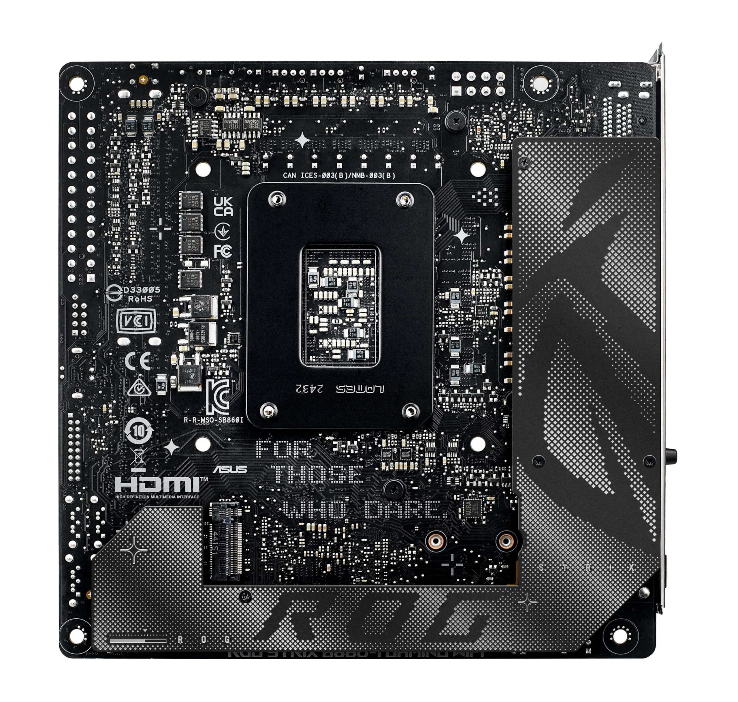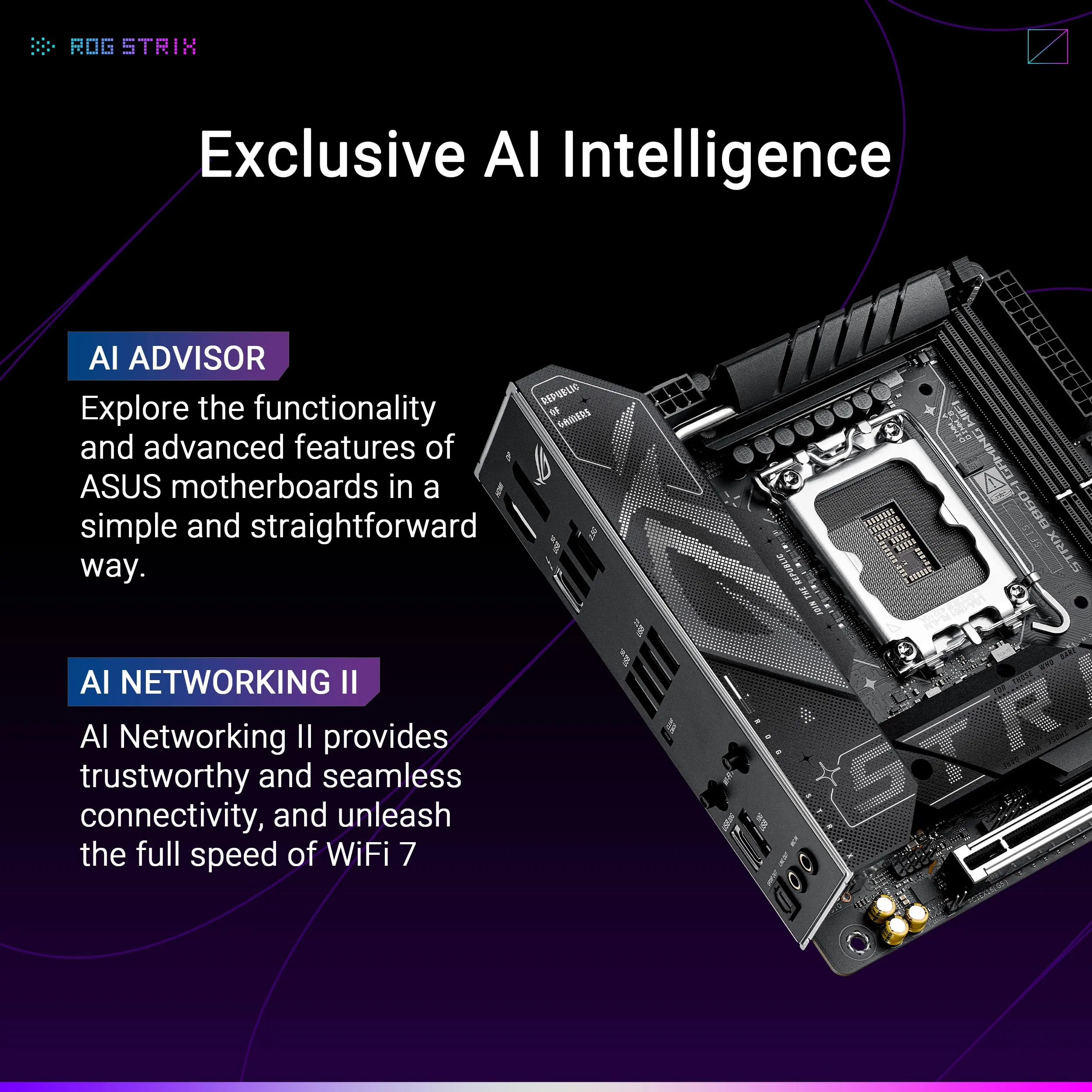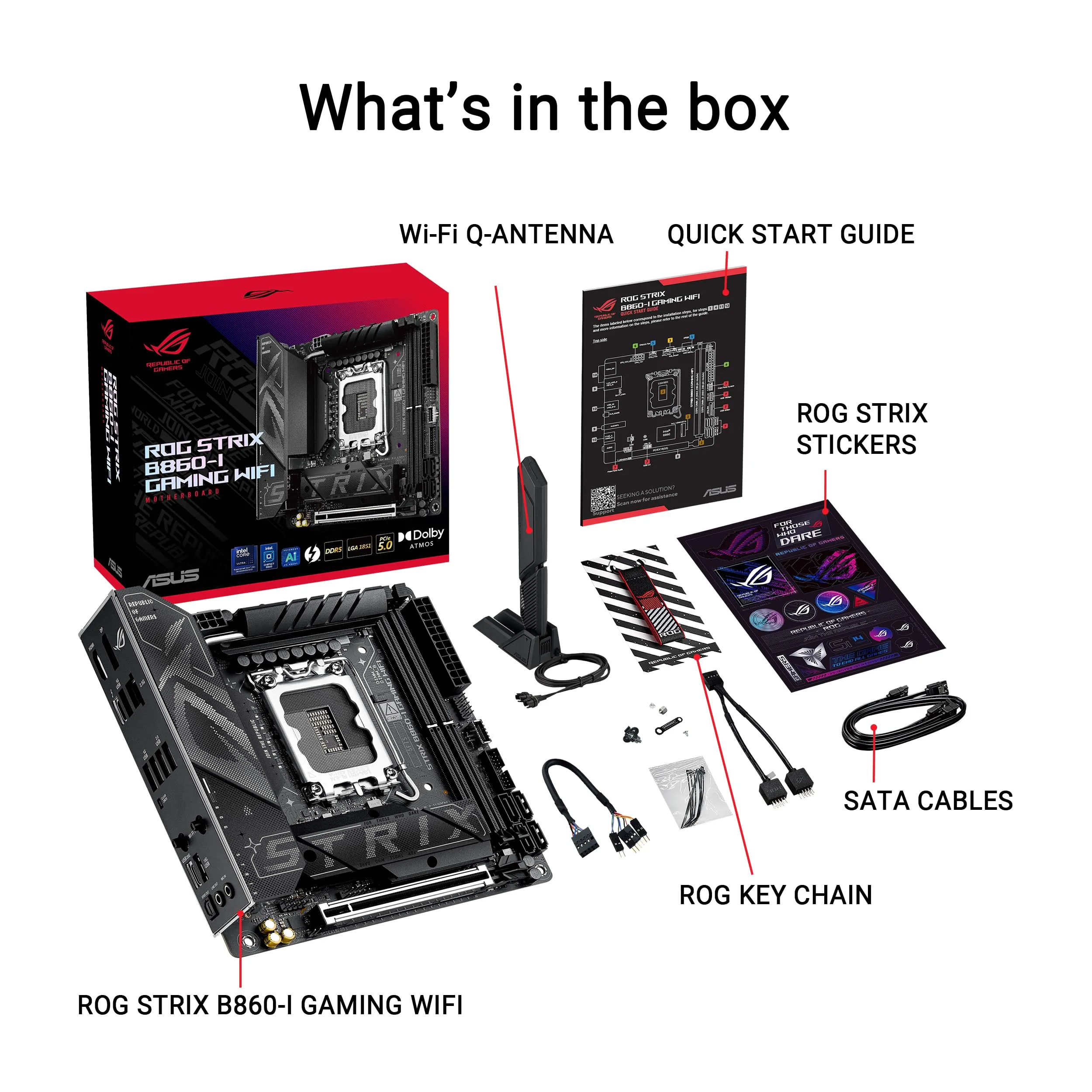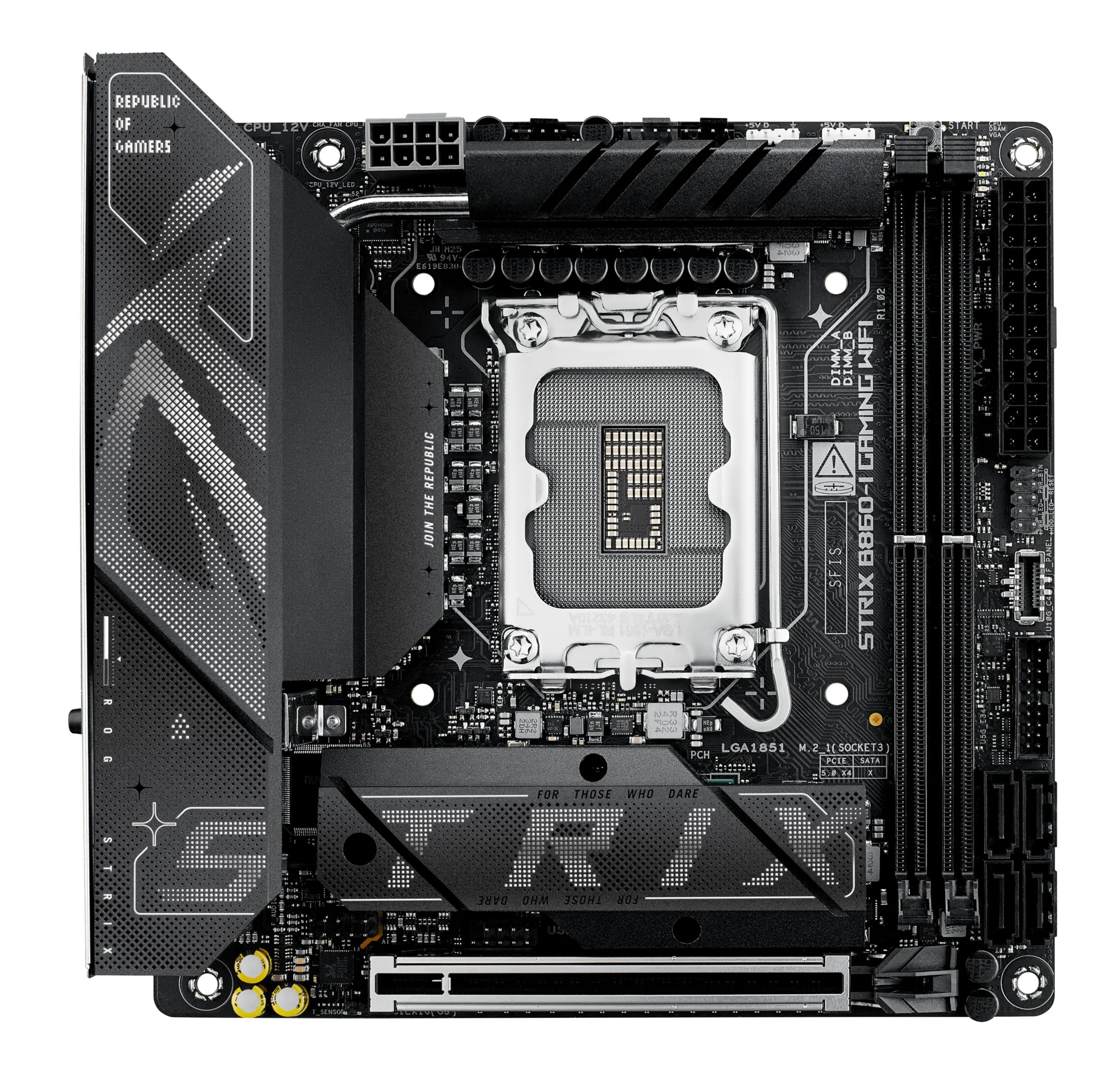 The ASUS ROG STRIX B860-I GAMING WIFI Motherboard is designed for gamers and PC enthusiasts alike. With its compact ITX form factor, it provides powerful performance in a small package while supporting the latest generation of Intel processors.