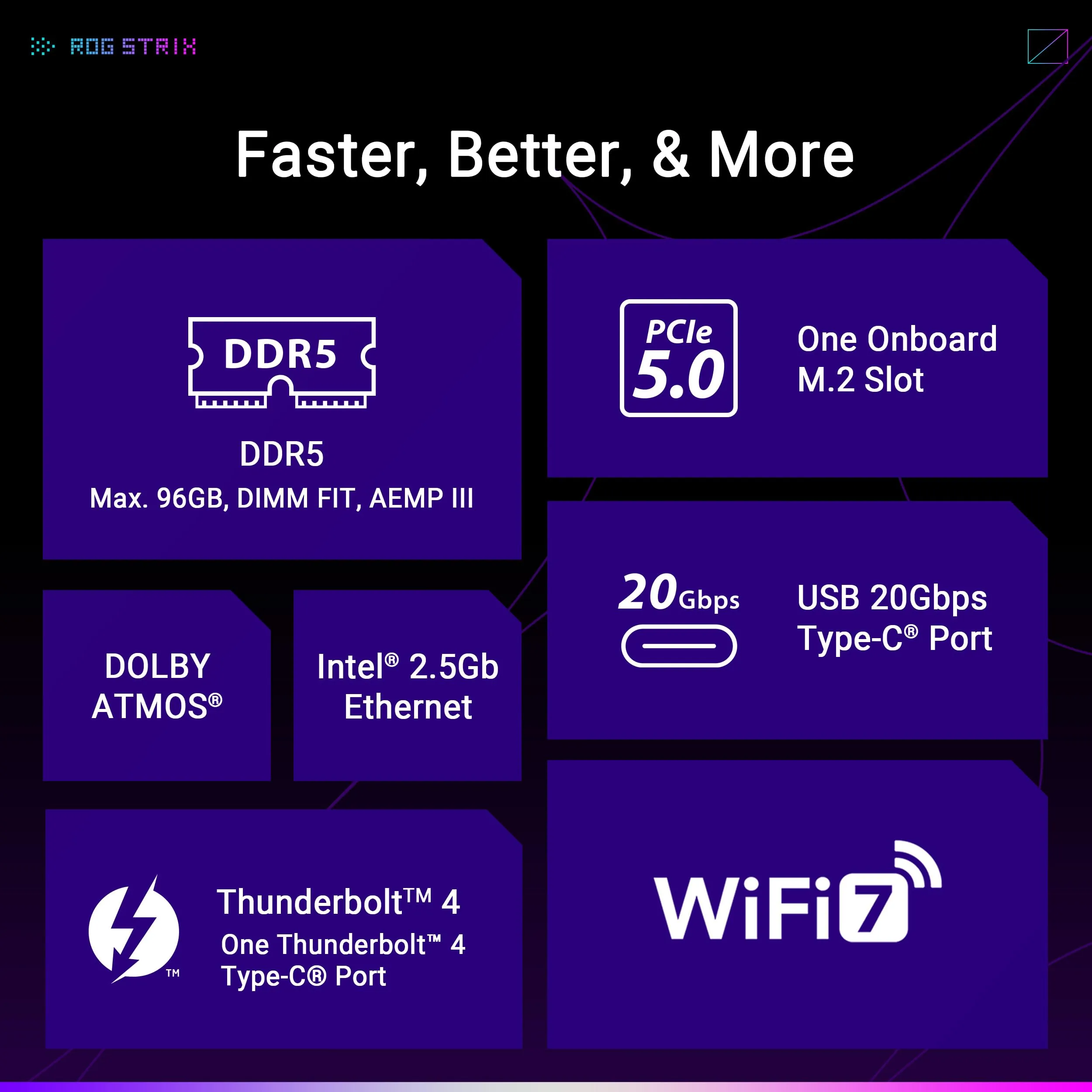 Equipped with dual-channel DDR5 memory support up to 96GB, high-speed Wi-Fi, and advanced cooling solutions, this motherboard ensures an exceptional gaming experience. The ROG Strix series brings together top-tier components and customizable lighting, making this board both powerful and aesthetically appealing.