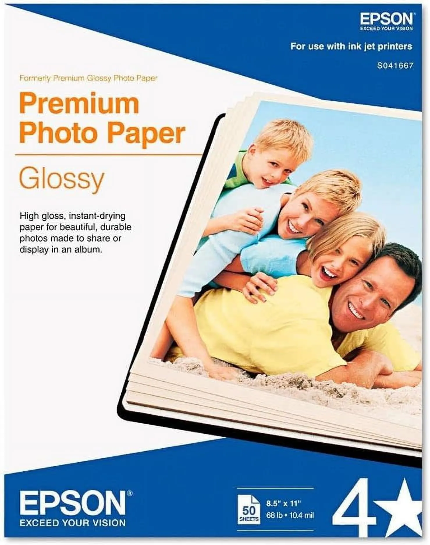 Marketing Information:Premium Glossy Photo Paper has a high gloss finish that is perfect for printing your favorite cherished photos and enlargements for use with glass frames and photo albums. Inkjet paper is specially coated to produce lab-quality photographs. This paper is smudge-resistant and water-resistant with a smooth, bright-white stock. Offers the look and feel of traditional photographs. 68 lb. 10.4 mil thickness.