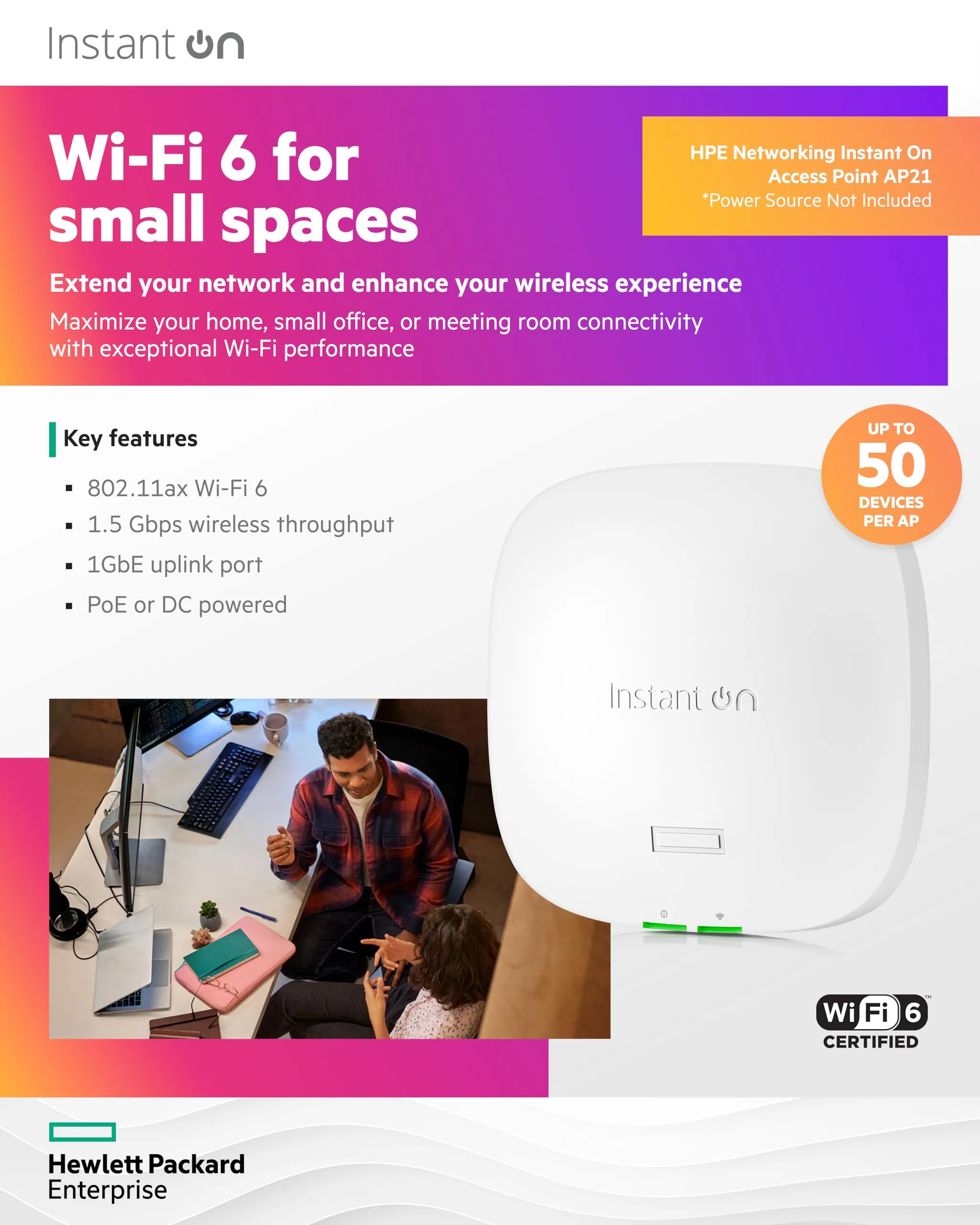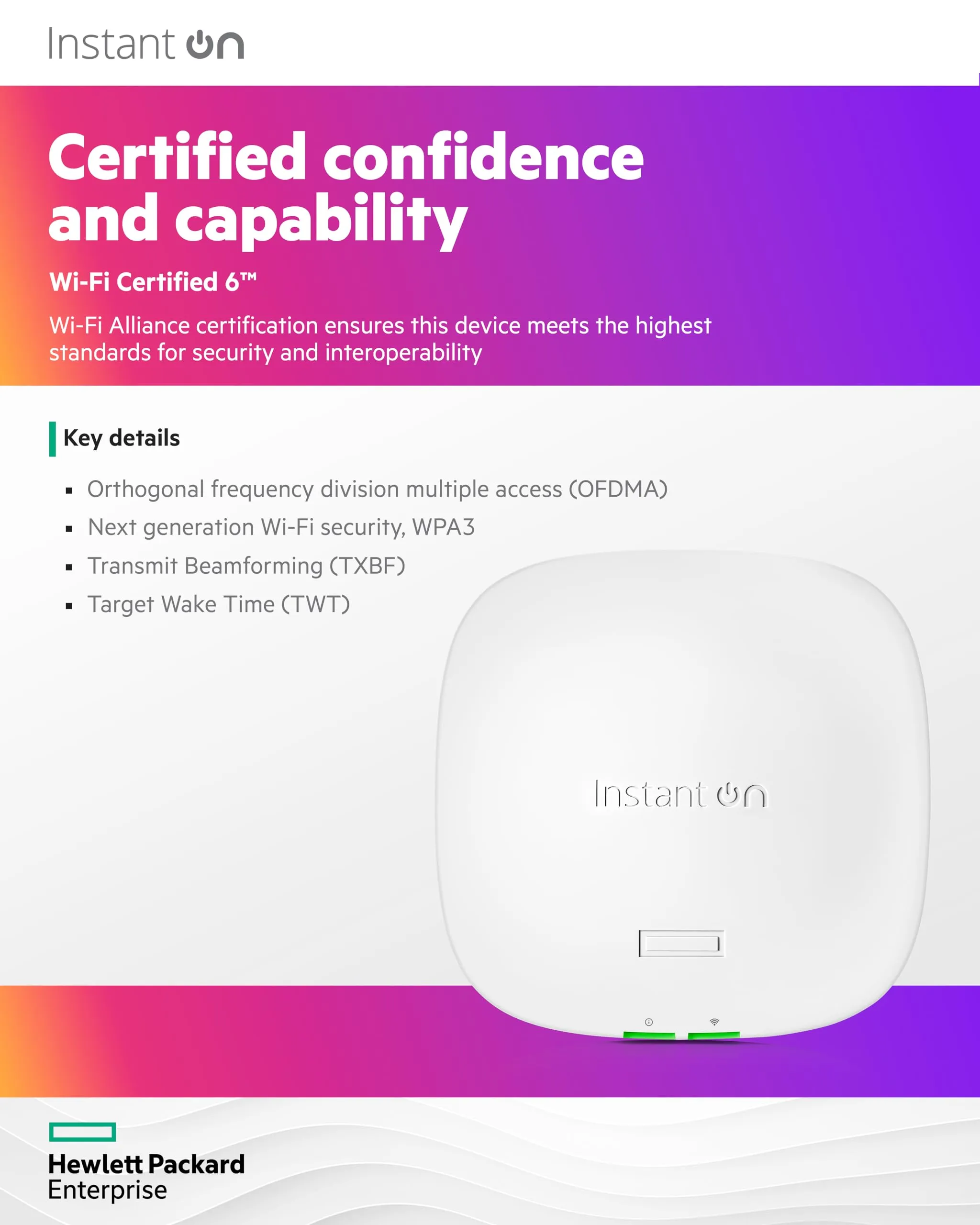 • Supports Wi-Fi 6 standard for improved speed and capacity