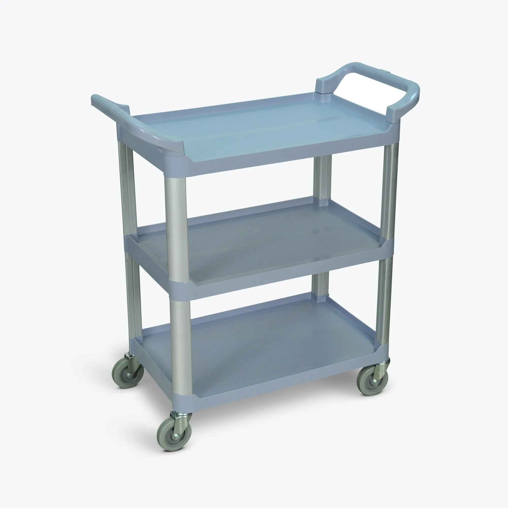 The Luxor Lightweight 3-Shelf Serving Cart is designed for seamless mobility and durability in various settings, including food service and healthcare. Featuring scratch-resistant polypropylene shelves, this cart is easy to clean and maintain. The sturdy aluminum uprights contribute to a robust stacking strength, enabling it to support up to 200 lbs. Each shelf is designed with a 1-inch lip along the sides and back, ensuring that contents are secure while allowing easy access from the front. With 12 inches of clearance between shelves, this cart provides ample space, while two ergonomic push handles and four 4-inch rolling casters enhance maneuverability.