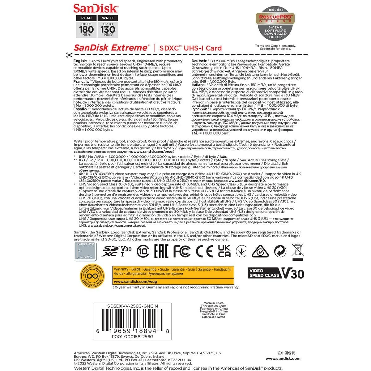 SanDisk Extreme Pro SDXC Memory Card, 256GB, 180MB/s