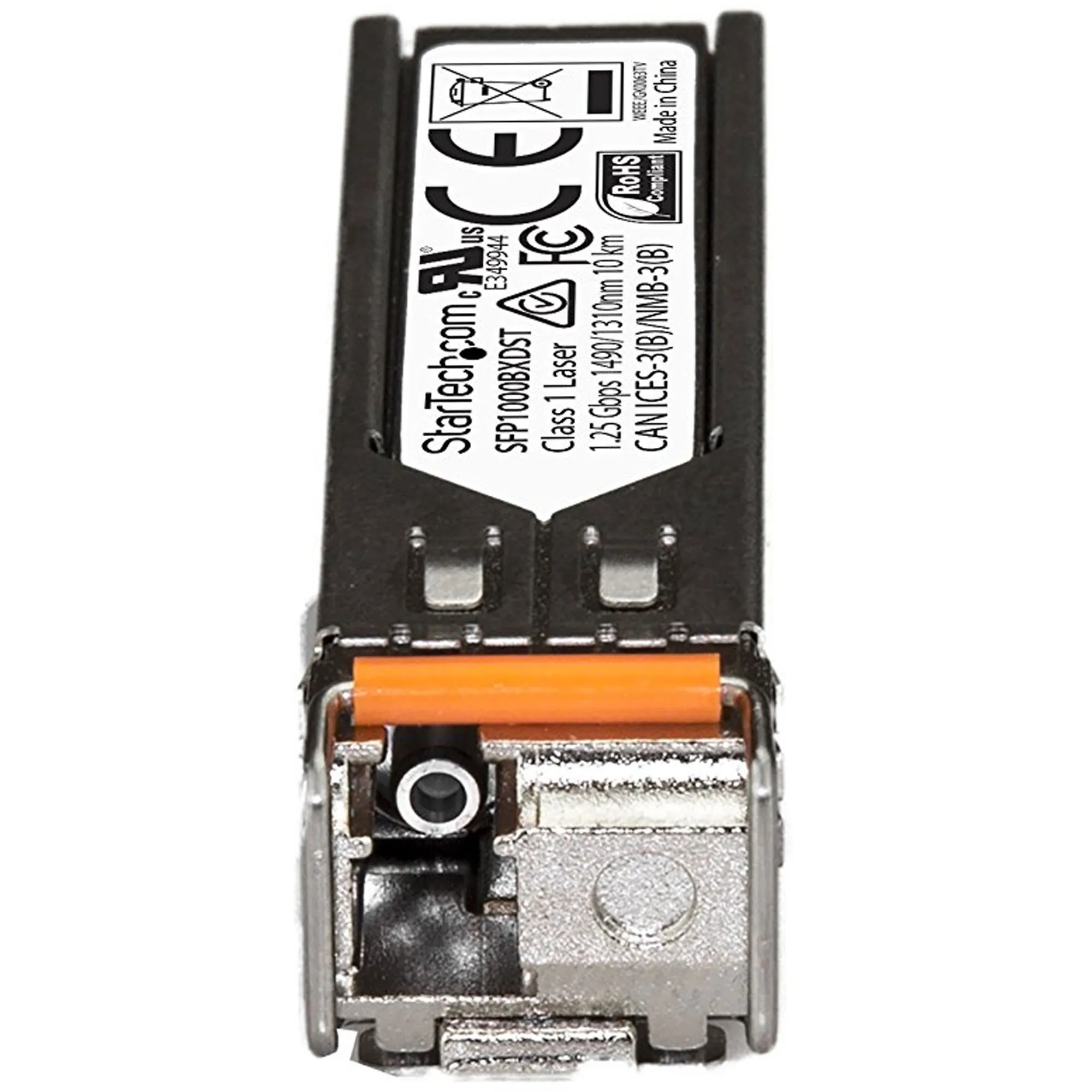 The SFP1000BXDST is an MSA compliant downstream fiber SFP transceiver which pairs with StarTech.com's SFP1000BXUST. They are designed, programmed and tested to work with 1000BASE-BX compatible MSA switches and routers. The SFP transceiver module supports a maximum distance of up to 10 km (6.2 mi) and delivers dependable 1 GbE connectivity over fiber cabling.