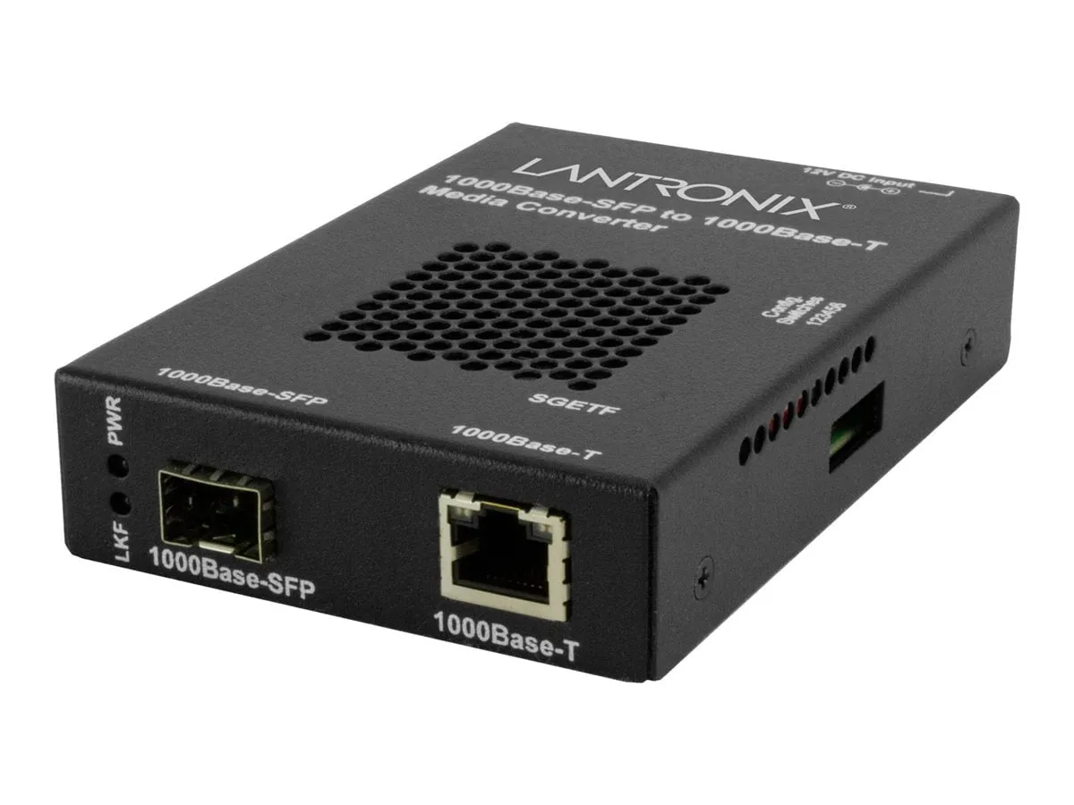 This Gigabit Ethernet Stand-Alone Media Converter can be used in conjunction with lower cost 1000BASE-T switches, companies can take advantage of the high bandwidth Gigabit Ethernet offers without all of the higher costs. Product Type: Transceiver/Media Converter Maximum Distance Supported: 328.08 ft Product Type: Transceiver/Media Converter Manufacturer Part Number: SGETF1040-110-NA Maximum Distance Supported: 328.08 ft Limited Warranty: Lifetime Network Technology: 1000Base-T Manufacturer: Transition Networks, Inc Product Model: SGETF1040-110 Product Name: Gigabit Ethernet Stand-Alone Media Converter Network Technology: 1000Base-T Brand Name: Transition Networks Brand Name: Transition Networks Expansion Slot Type: SFP Expansion Slot Type: SFP Country of Origin: United States Height: 1 Width: 3.3 Depth: 4.8 Ethernet Technology: Gigabit Ethernet Number of Total Expansion Slots: 1 Number of Network (RJ-45) Ports: 1 Network (RJ-45): Yes Media Type Supported: Twisted Pair Total Number of Ports: 1 Ethernet Technology: Gigabit Ethernet Number of Total Expansion Slots: 1 Number of Network (RJ-45) Ports: 1 Network (RJ-45): Yes Number of SFP Slots: 1 Media Type Supported: Twisted Pair Total Number of Ports: 1