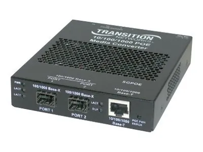 Transition Networks SGPOE1040-100 Gigabit Ethernet Media Converter - 1 x RJ-45 - 10/100/1000Base-T, 1000Base-X - 1 x SFP (mini-GBIC) - External, Rack-mountable