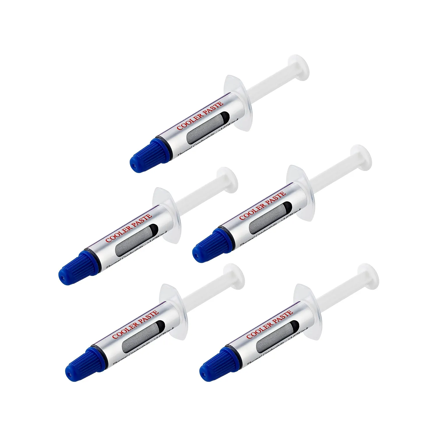 Upgrade your cooling solutions with our High-Performance Thermal Paste 5 Pack. This set includes five 1.5g syringes of metal oxide-based thermal grease, designed to enhance heat dissipation from CPUs, GPUs, and other integrated circuits. The high-performance silver paste operates efficiently in a temperature range from -22°F to 365°F (-30°C to 180°C), ensuring optimal cooling for your components.