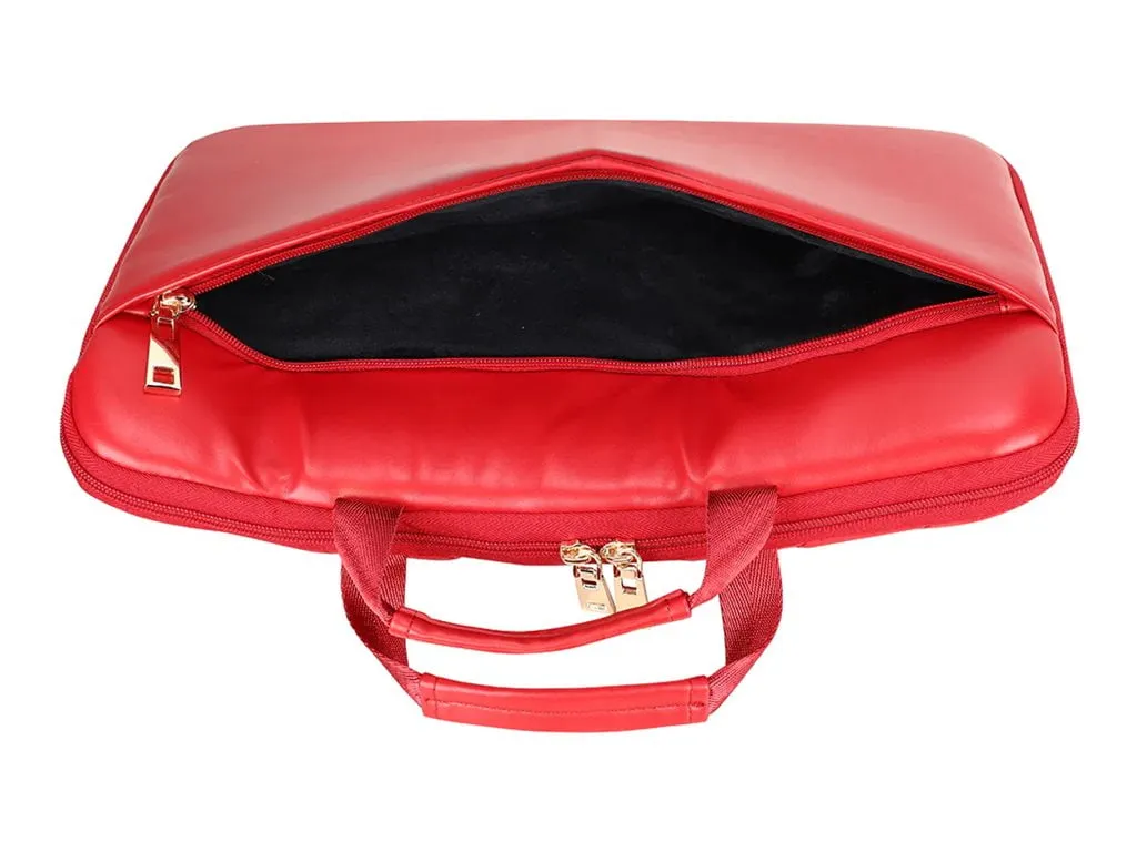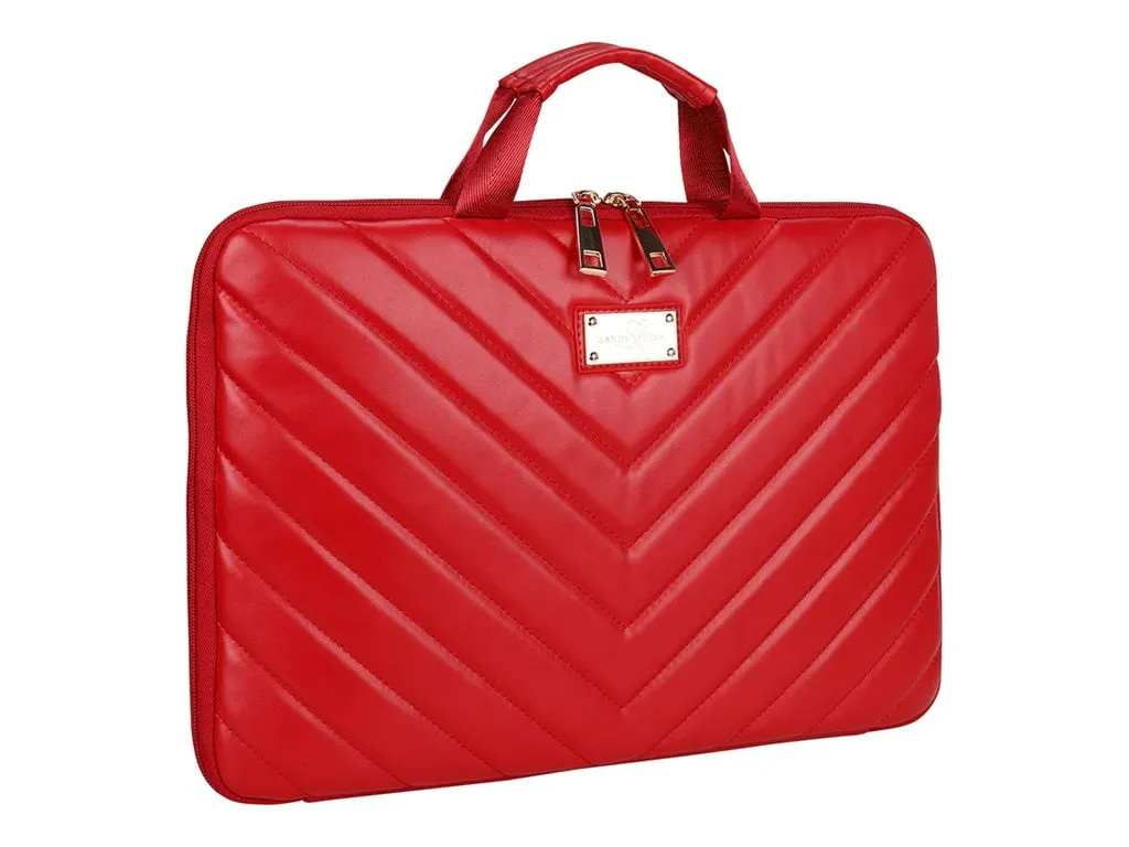 The Stylish Red Capri Laptop Sleeve is designed to accommodate up to a 14" laptop, making it perfect for everyday use. Featuring a vibrant chevron print, this sleeve not only protects your device but also adds a touch of fashion to your accessories. It can be used on its own or fit effortlessly inside another bag. With ample space for your valuables and accessories, this sleeve is both fashionable and functional, complete with easy-to-use handles.