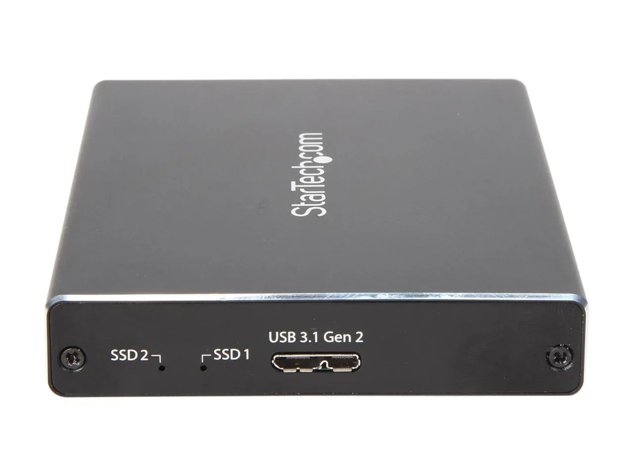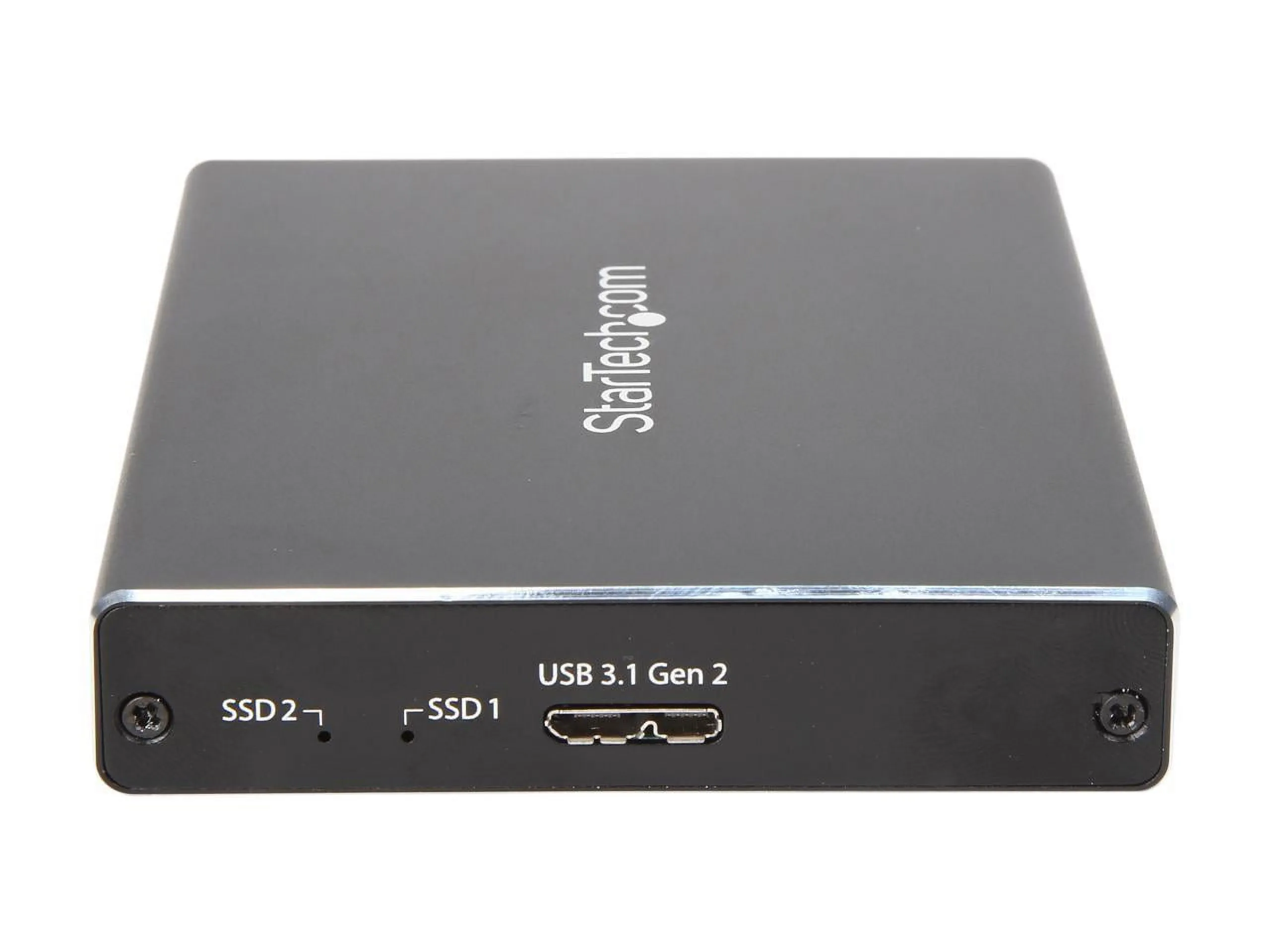 StarTech.com SM22BU31C3R Aluminum M.2 (NGFF, B-Key) Black 2 - M.2 SATA (67 pin, NGFF) Slot Receptacle 1 - USB 3.1 USB Type Micro-B (10 pin, Gen 2, 10 Gbps) Male Dual-Slot Drive Enclosure for M.2 NGFF SATA SSDs - USB 3.1 (10Gbps) - RAID