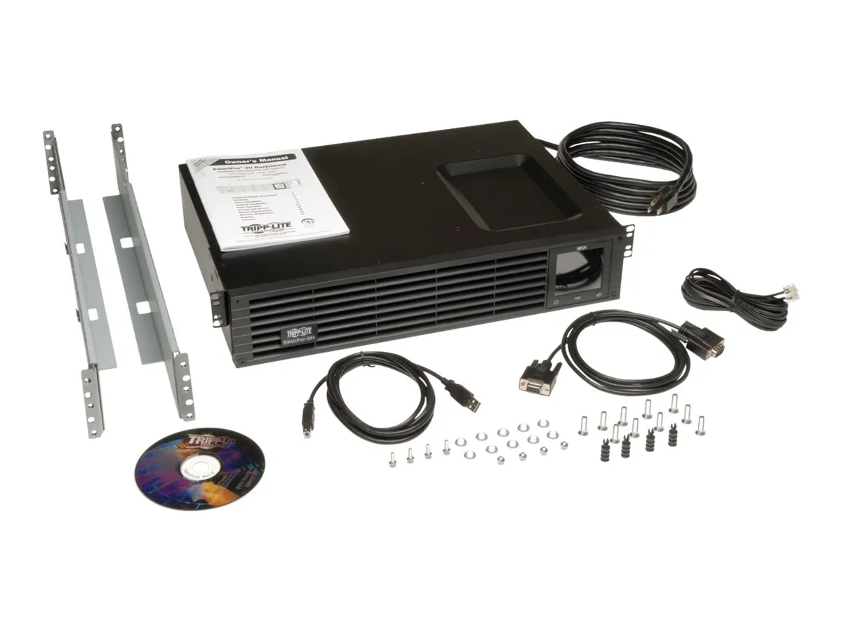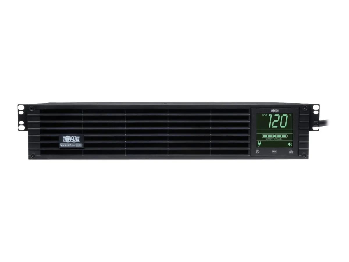 Maintain a robust network with the SMART1000RM2U Tripp Lite Smart Pro UPS It requires only two rack spaces 2U in a standard rack enclosure Large internal batteries in this power control UPS offer 17 minutes of backup runtime at half load and seven minutes at full load It maintains a solid nominal output without using alternative energy during brownouts This black 120V UPS has 1000VA700W powerhandling capability and full time sine wave output It includes a total of six outlets arranged in two load banks that are individually controllable via a software interface Additionally it supports simultaneous remote monitoring and site power conditions via a builtin network accessory card slot USB and DB9 serial monitoring ports An optional SNMPWEBCARD accessory enables remote monitoring as a managed device via network management console applications