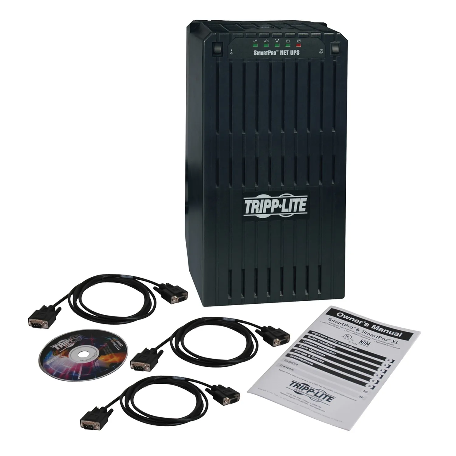 Tripp Lite's SmartPro SMART 2200NET Extended Run Line-Interactive UPS Tower with 3 DB9 Ports protects servers, networking accessories and telecommunications equipment from blackouts, voltage fluctuations and transient surges. Large internal batteries offer 27 minutes half load run time and 11 minutes fully loaded. The runtime is expandable with optional external battery packs. 2,200-volt-ampere/1,700 watt power handling capability supports a variety of networking, telecom and other sensitive electronic applications. It includes 6 protected outlets and supports remote monitoring of UPS and site power conditions via built-in RS-232 enabled monitoring port, plus standard UPS monitoring via 2 built in contact closure ports. PowerAlert UPS monitoring and unattended shutdown software is available via free download. Built-in audible alarm and front panel LEDs indicate line power, battery power, battery charge level, load level, plus voltage regulation status. Network grade AC surge suppression protects equipment from damage and performance problems resulting from transient surges.