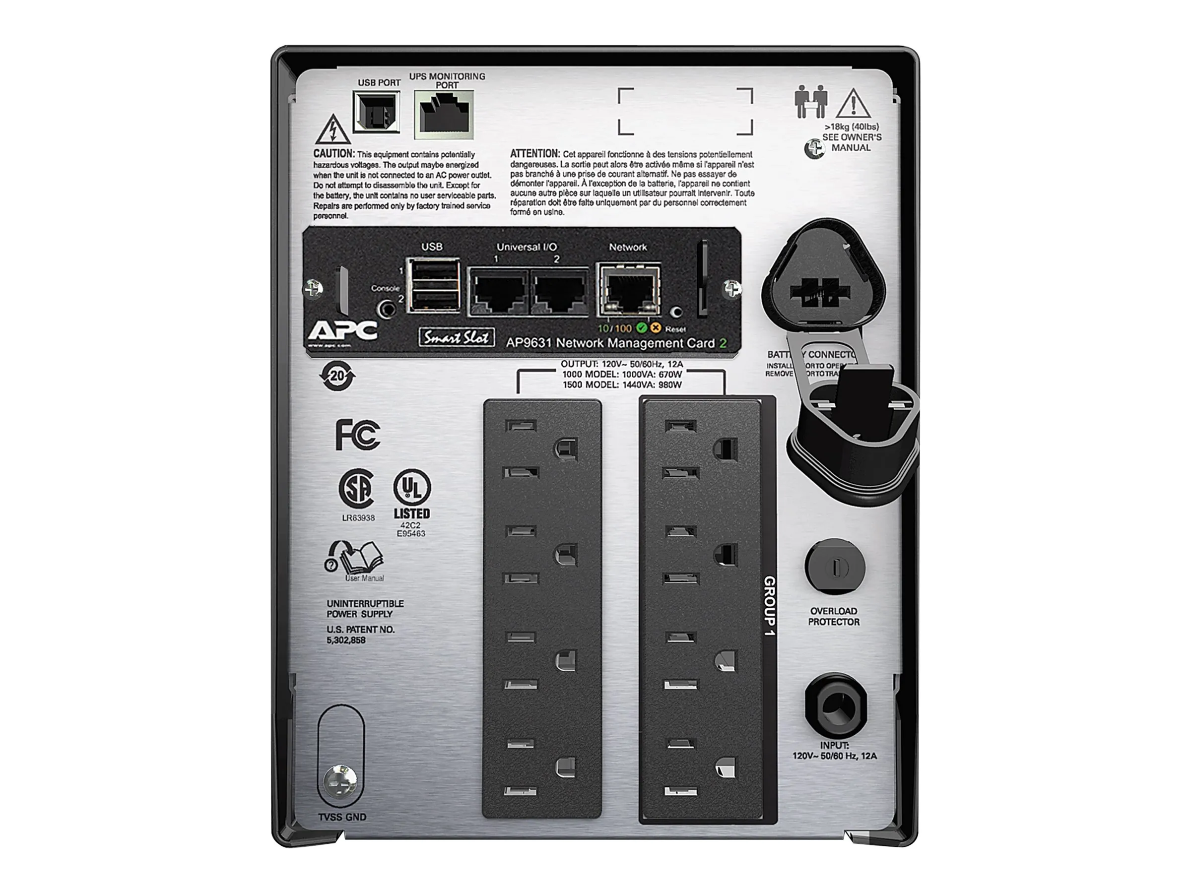 UPS - AC 120 V - 1 kW - 1440 VA - Ethernet RS-232 USB - output connectors: 8 - black - with APC UPS Network Management Card