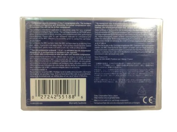 Premium cartridge features patented AME processing, resulting in significantly enhanced recording performance. Built-in flash memory chip enables rapid access to data and greatly reduces load and ejection times. Diamond-hard carbon coating protects tape surface, contributing to the cartridge's superior reliability and long archival life span. Excellent throughput rate helps operations move more swiftly. Premium cartridge features patented AME processing, resulting in significantly enhanced recording performance. Built-in flash memory chip enables rapid access to data and greatly reduces load and ejection times. Diamond-hard carbon coating protects tape surface, contributing to the cartridge's superior reliability and long archival life span. Excellent throughput rate helps operations move more swiftly. Global Product Type: Data Cartridges Tapes-AIT-2; For Drive Type: AIT; Compatibility: AIT 1; AIT 1 Turbo; AIT 2; AIT 2 Turbo; AIT-E Turbo; Maximum Native Data Capacity: 50.0 GB.