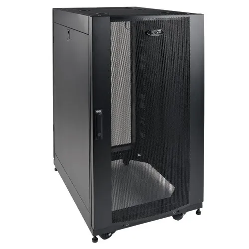 The SR25UBSD3 25U SmartRack Shallow-Depth Rack Enclosure Cabinet houses equipment up to 27 inches in depth-ideal for storing shallow audio/video components and smaller equipment in areas with limited floor space. Constructed of steel with a resilient textured powder-coated finish, the SR25UBSD3 features adjustable mounting rails that accommodate up to 3,000 pounds of equipment in 25U of rack space.To ensure your valuable equipment stays safe and secure, the side panels, reversible back door and reversible, removable front door lock to prevent unauthorized access. The front and rear doors are perforated, which allows air to flow freely through the rack to keep equipment cool. Vented top panels and an open bottom help remove warm air from the enclosure and draw in cool air by convention(they also support the installation of standard case fans, such as Tripp Lite's SRFANROOF).The SR25UBSD3 comes fully assembled with removable casters that let you roll...The SR25UBSD3 25U SmartRack Shallow-Depth Rack Enclosure Cabinet houses equipment up to 27 inches in depth-ideal for storing shallow audio/video components and smaller equipment in areas with limited floor space. Constructed of steel with a resilient textured powder-coated finish, the SR25UBSD3 features adjustable mounting rails that accommodate up to 3,000 pounds of equipment in 25U of rack space.To ensure your valuable equipment stays safe and secure, the side panels, reversible back door and reversible, removable front door lock to prevent unauthorized access. The front and rear doors are perforated, which allows air to flow freely through the rack to keep equipment cool. Vented top panels and an open bottom help remove warm air from the enclosure and draw in cool air by convention(they also support the installation of standard case fans, such as Tripp Lite's SRFANROOF).The SR25UBSD3 comes fully assembled with removable casters that let you roll the fully loaded enclosure to its desired location. Installing equipment within the enclosure is easy enough with its square mounting holes and numbered rack spaces. The front and rear vertical rails adjust in ΒΌ-inch increments from 4 to 27 inches. Just unscrew the rails, slide them to the desired depth, and tighten the screws. The enclosure supports toolless button-mount 0U installation of up to four compatible PDUs and cable managers. This makes cable routing to rack equipment easier and reduces clutter.Technical InformationApplication/Usage: A/V EquipmentPhysical CharacteristicsForm Factor: Floor StandingColor: BlackMaterial: Steel FrameMaximum Weight Capacity: 3000 lbDynamic/Rolling Weight Capacity: 3000 lbStatic/Stationary Weight Capacity: 3000 lbHeight: 50"Width: 23.6"Depth: 32.6"Rack Height: 25URack Depth: 27"Weight (Approximate): 190 lbMiscellaneousPackage Contents: SR25UBSD3 25U SmartRack Shallow-Depth Rack Enclosure Cabinet 2 x Side panels 2 x Side panel locks Front door panel 2 x Rear door panels 50 x M6 screws 50 x M6 cage nuts 50 x M6 washers 2 x Hold-down brackets Keys Owner's Manual Assembly Required: NoEnvironmentally Friendly: YesEnvironmental Certification: RoHSWarrantyLimited Warranty: 5 Year