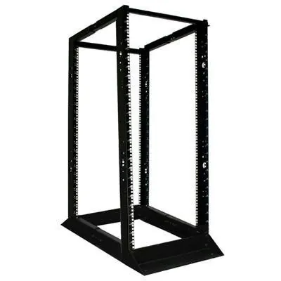 Supports 1000lbs of rackmount equipment Adjustable mounting depth (24 to 36 inches) Textured powder coat finish Heavy-duty cold-rolled steel construction Numbered mounting positions Bolt down provisions Self squaring design Black finish Easy assembly