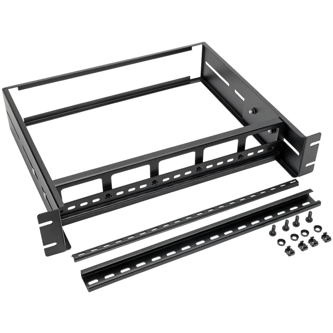 General InformationDIN Rail-Mounting Kit Compatible with Wide Range of EquipmentThis 2U rack-mount DIN kit includes top hat, mini top hat and G-style rails, making it compliant with an array of DIN rail equipment, such as power supplies, bell transformers, terminal strips, programmable time switches and circuit breakers. The adjustable rails can be easily set back to match DIN rail equipment of any depth. Premium Construction Designed to Endure in Busy Rack ApplicationsThe SRDINRAIL2U DIN rail-mounting kit is made from durable cold-rolled steel with a black powder-coated finish that blends seamlessly with your rack dcor. It mounts into 2U of space in an EIA-standard 19-inch open frame rack or floor-standing rack enclosure. Rack-mounting hardware is included for quick installation right from the box.2-Year Warranty and Environmentally Responsible DesignThe SRDINRAIL2U comes with a 2-year warranty. It's manufactured in compliance with strict RoHS specifications, reflecting Tripp Lite's commitment to environmental responsibility.Physical CharacteristicsForm Factor: Rack-mountableColor: BlackMaterial: Cold-rolled Steel (CRS)Static/Stationary Weight Capacity: 39.68 lbHeight: 3.5"Width: 19"Depth: 14.1"Weight (Approximate): 5.95 lbRack Height: 2URack Width: 19"MiscellaneousPackage Contents: Adjustable Rack-Mount DIN Rail Kit - Top Hat, Mini Top Hat and G-Style Rails 4 x M6 Screws 4 x M6 Cage Nuts 4 x M6 Cup Washers Mini Top Hat Rail G-Style Rail Environmentally Friendly: YesEnvironmental Certification: RoHSWarrantyLimited Warranty: 2 Year