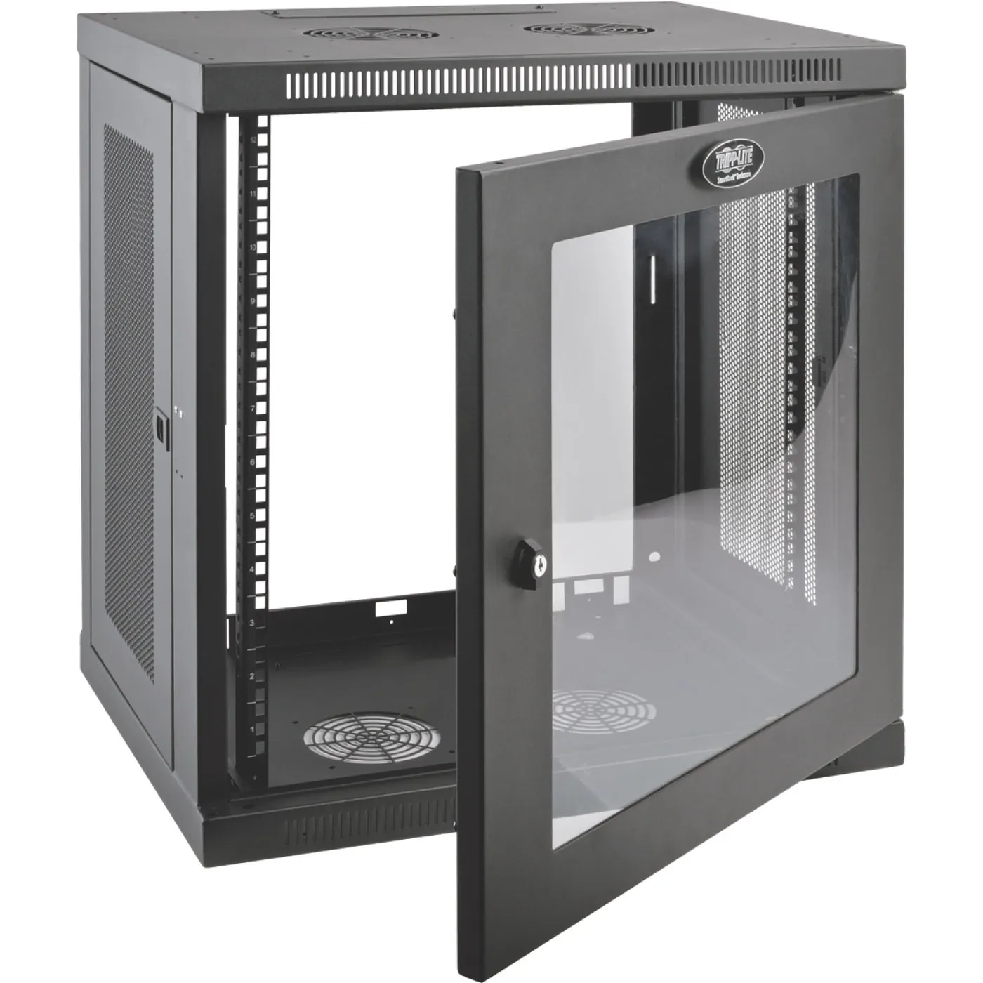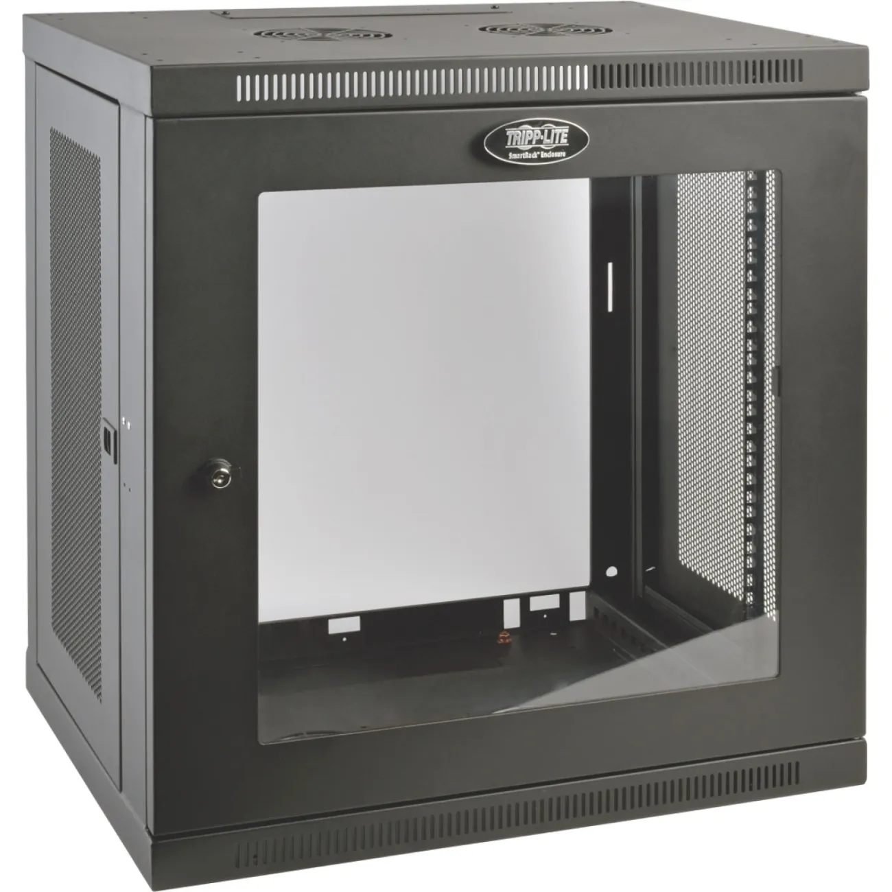 General InformationThe SRW12UG SmartRack 12U Low-Profile Switch-Depth Wall-Mount Rack Enclosure Cabinet is designed to house EIA-standard 19-inch rack equipment in network wiring closets, retail locations, classrooms, back offices and other areas with limited floor space where you need equipment to be secure, organized and out of the way. Constructed from heavy-duty steel with a durable black powder-coated finish, the cabinet has a maximum load capacity of 200 pounds.The front door features a shatter-resistant clear acrylic window that lets you monitor equipment readouts without unlocking the enclosure. Not only does the window help prevent equipment tampering and reduce acoustic noise, but it also adds visual flair to your IT installation. The side panels and front door lock securely to help prevent damage, tampering or theft. The top, bottom and removable side panels are vented, which allows air to flow freely and keep equipment cool. The reversible front door can open left or right by rotating the cabinet 180 before mounting. Convenient top and bottom ports allow easy cable routing. The SRW12UG comes fully assembled and ready to mount to the wall, or use Tripp Lite's optional SRCASTER rolling caster kit to make it a mobile rack. Square and threaded mounting holes and numbered rack spaces make equipment installation easy. The vertical mounting rails adjust in 7/8-inch increments to accommodate equipment up to 16.5 inches deep, such as network switches and patch panels.Additional Product SpecificationsFull Product Specifications: Click to viewTechnical InformationApplication/Usage: ServerPhysical CharacteristicsForm Factor: Wall MountableColor: Black Powder CoatMaterial: SteelMaximum Weight Capacity: 200 lbStatic/Stationary Weight Capacity: 200 lbHeight: 25.1"Width: 23.6"Depth: 17.7"Rack Height: 12URack Width: 19"Rack Depth: 16.50"Weight (Approximate): 48.50 lbMiscellaneousPackage Contents: SRW12UG SmartRack 12U Low-Profile Switch-Depth Wall-Mount Rack Enclosure Cabinet 18 x M6 Screws 18 x M6 Cage Nuts 18 x M6 Cup Washers 18 x 12-24 Screws Removable Mounting Plate 3 x Mounting Plate Screws 2 x Keys Owner's Manual Assembly Required: NoEnvironmentally Friendly: YesEnvironmental Certification: RoHSWarrantyLimited Warranty: 5 Year