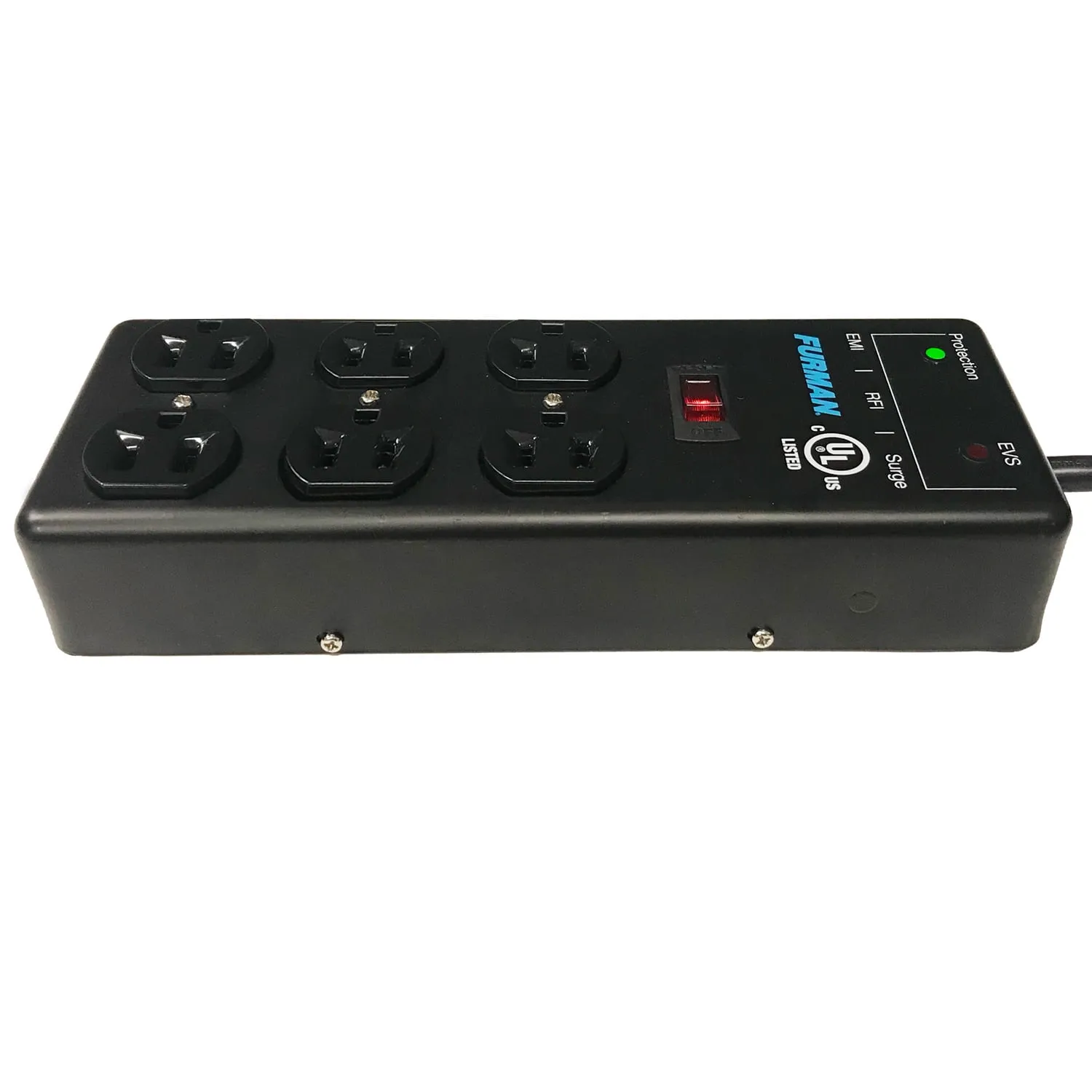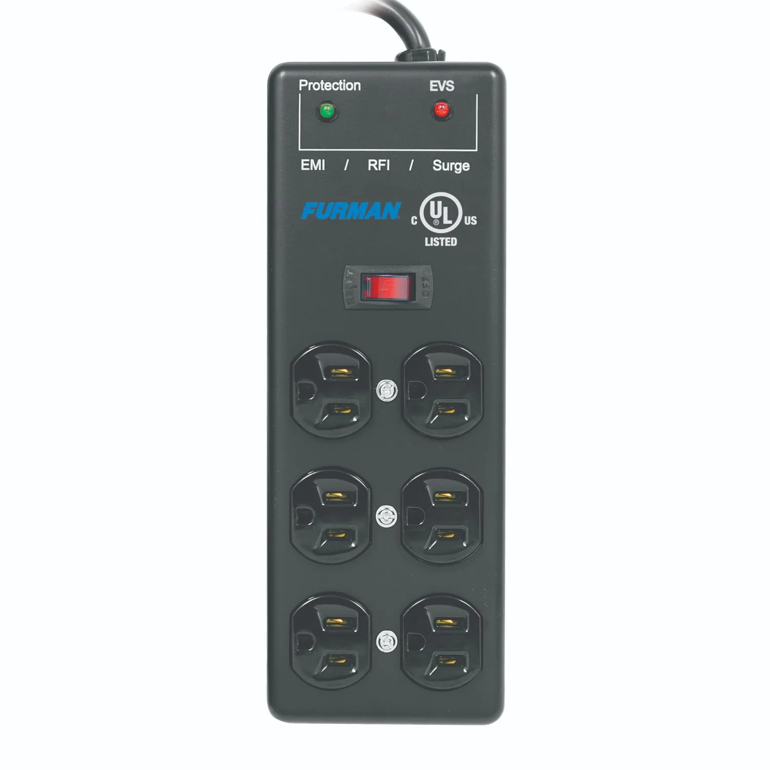 Protect your valuable studio equipment with the Furman SS-6B-Pro Power Conditioner. Unlike standard surge protectors, the SS-6B-Pro is equipped with Furman's exclusive Extreme Voltage Shutdown (EVS) technology, which effectively disconnects power during dangerous over-voltage or under-voltage events. This ensures the ultimate defense against catastrophic damage. With six outlets and a rugged steel block construction, the unit provides not only standard surge protection but also superior RFI/EMI filtration, delivering clean, noise-free power for your recording studio or live sound rig.