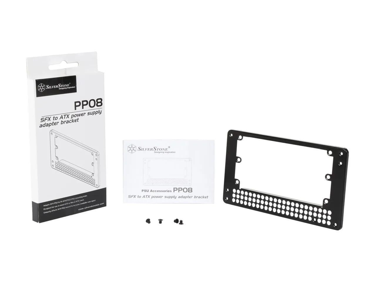 The SilverStone PP08 is a high-quality adapter bracket designed to allow SFX power supplies to fit seamlessly into standard ATX cases. This bracket provides a sturdy and reliable mounting solution, ensuring your power supply remains secure while maximizing airflow within your build.
