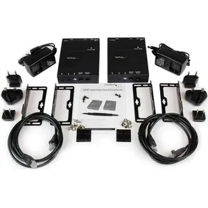 The HDMI® over IP kit lets you extend an HDMI signal over your network. You can use additional receivers (sold separately) to distribute the HDMI signal to multiple locations and combine your remote displays to create a video wall.
