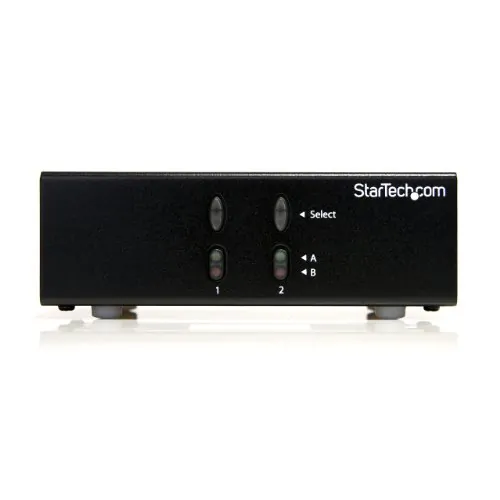 The ST222MXA 2x2 VGA Matrix Switcher/Splitter allows you to share 2 distinct VGA inputs (as well as a corresponding audio source), between 2 independent displays or projectors.