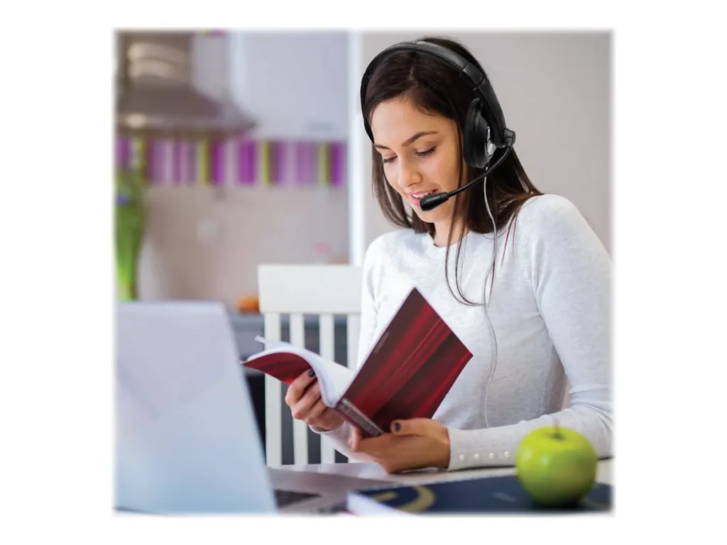 The lightweight design ensures comfort during extended use, while the adjustable headband and padded ear cups provide a snug fit. With a built-in microphone, communicate clearly without hassle.
