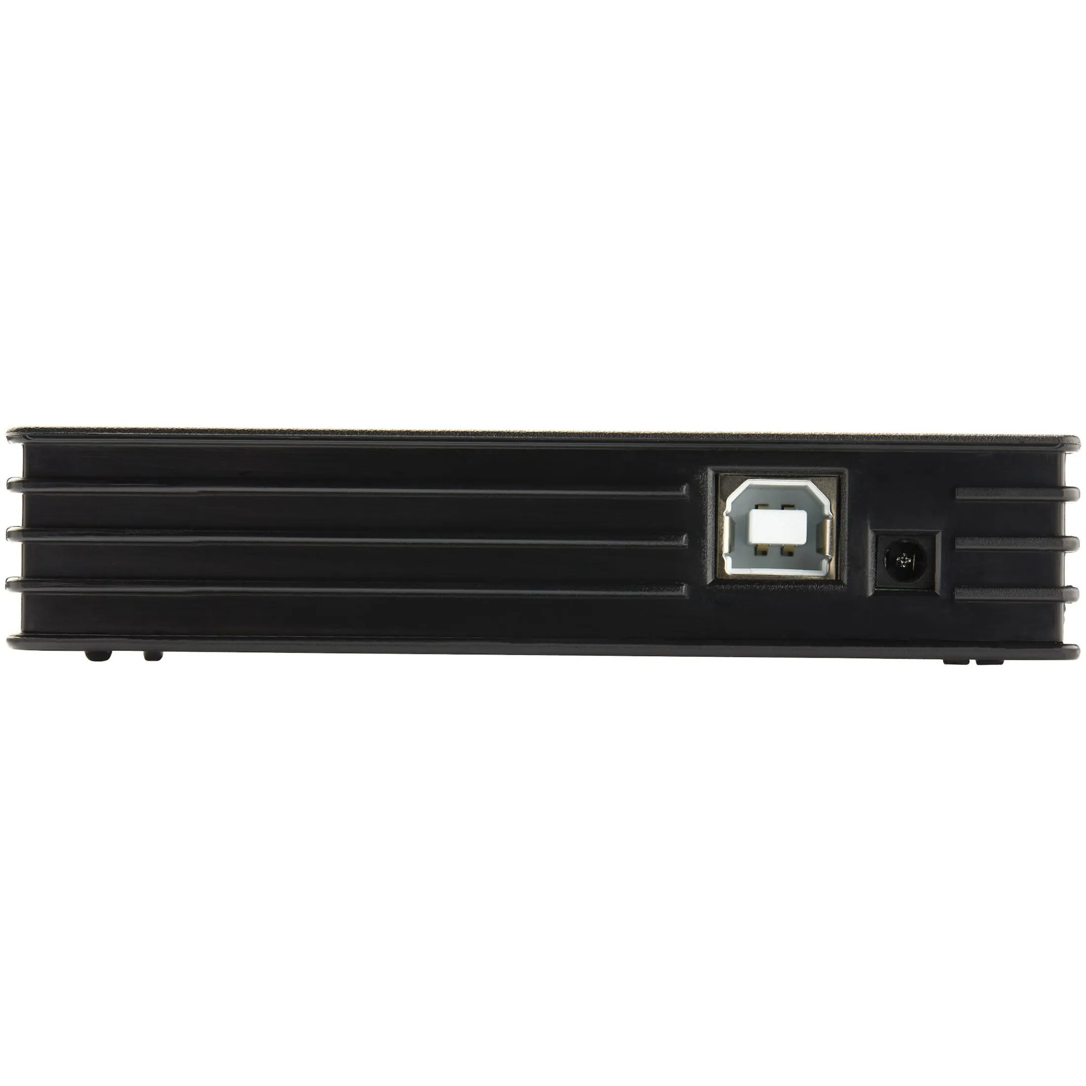 - Supports bus powered operation or an external power adapter to support high powered USB devices
