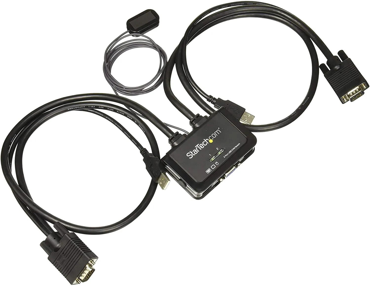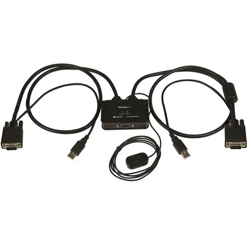 Control two VGA, USB-equipped PCs with a single monitor keyboard and mouse peripheral set - 2 Port USB VGA Cable KVM Switch - USB Powered with Remote Switch - KVM with VGA - Dual Port VGA KVM Switch - Two Port VGA USB KVM Switch - Supports resolutions up to 2048x1536 - Remote switch on 1.5m (5ft.) cable