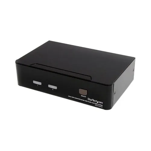 The SV231DVIUA 2-Port DVI USB KVM Switch lets you control two USB-enabled, DVI-capable computers from a single monitor and peripheral set (keyboard, mouse and speakers), and two additional USB peripherals connected through the built-in USB hub ports.