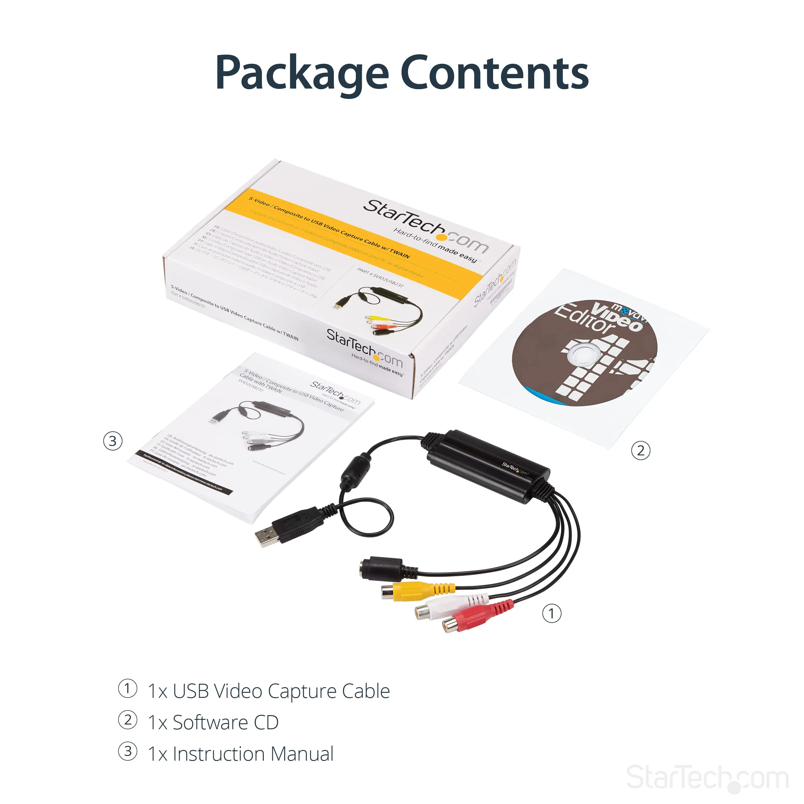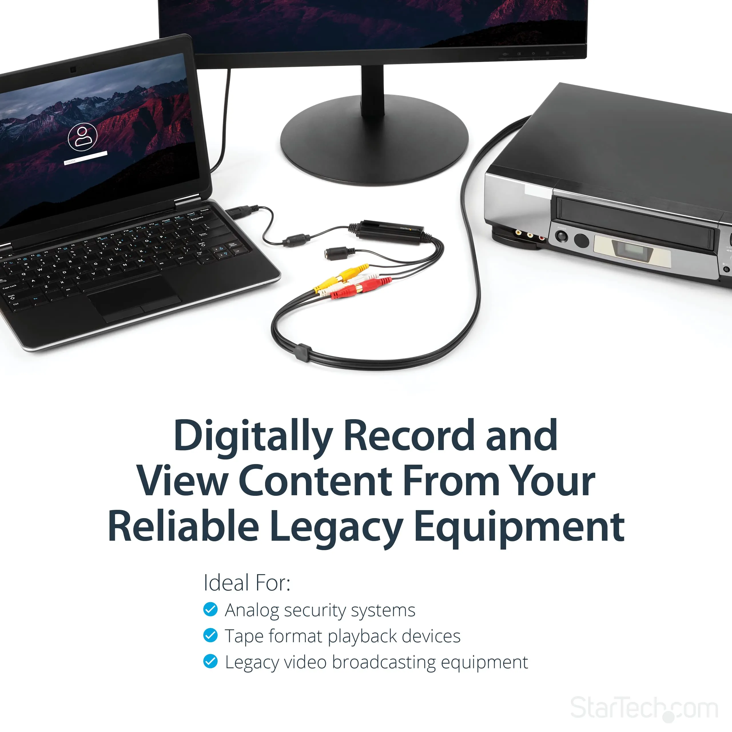 This USB video capture adapter lets you convert composite / S Video into digital media (VCR / VHS to DVD / PC storage) - This USB 2.0 video capture device is intended for Windows devices and utilizes TWAIN to support various third-party software - This analog to digital video capture adapter supports 720x480i (NTSC) / 720x576 (PAL) and MPEG-1, MPEG-2 and MPEG-4 encoding - This analog to digital converter bus-powered and features a lightweight and compact design
