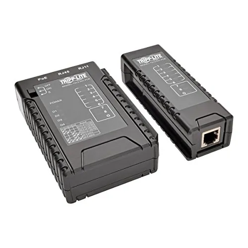 Tripp Lite T013-001-POE NNetwork Cable Continuity Tester with PoE Detection for Cat5e/Cat6/Cat6a and Phone Cable Assemblies:Combines main tester unit and removable remote tester unitTests live RJ11 and RJ45 cables for data and power presenceIdentifies power sourcing equipment type in a network