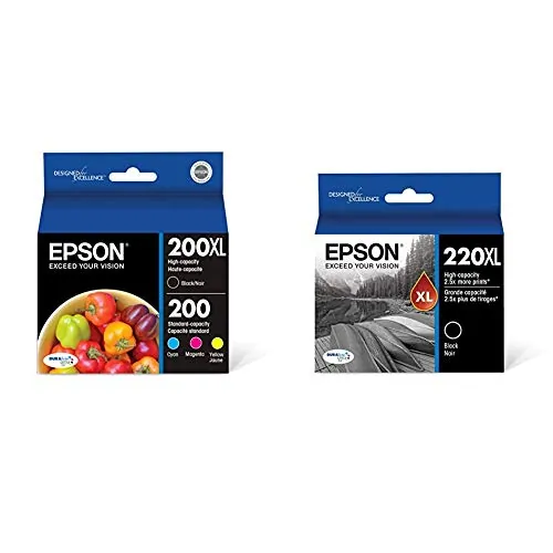 Experience high-quality printing with the DuraBrite Ultra XL Ink Cartridge Combo Pack. The T200 series includes a black cartridge and a standard capacity color cartridge, designed for vibrant color reproduction and sharp text.