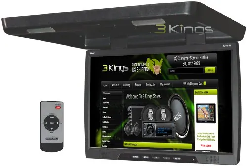 BRAND NEW TVIEW T206IR 20 INCH THIN TFT FLIP DOWN CEILING-MOUNT CAR/TRUCK MONITOR WITH TWIN DOME LIGHTS, AND BUILT IN IR TRANSMITTER AND AMAZING RESOLUTION AND THE BEST FEATURES**BIG AND BEAUTIFUL DISPLAY**Features:Super Slim!!20" Roofmount TFT LCD MonitorResolution: 1240 x 800 pixelsWide Screen16:9 aspect ratioPAL & NTSC Multi SystemDisplay: TFT Active Matrix SystemWith IR TransmitterAdjustable color settings (brightness, saturation, contrast, color, etc)In-Line Noise FilterHigh ResolutionDual Interior Lamps (Dome Lights)Two Video InputsFree Remote ControlOSD MenuPower Input: DC12VOnly 1.5" Depth - Thinnest 20" monitor on the market!!Free full function remoteDimensions: 19" W x 15" L x 1.5" DWeight: 4800GBrightness: 300 CD/m21000: 1 Contrast