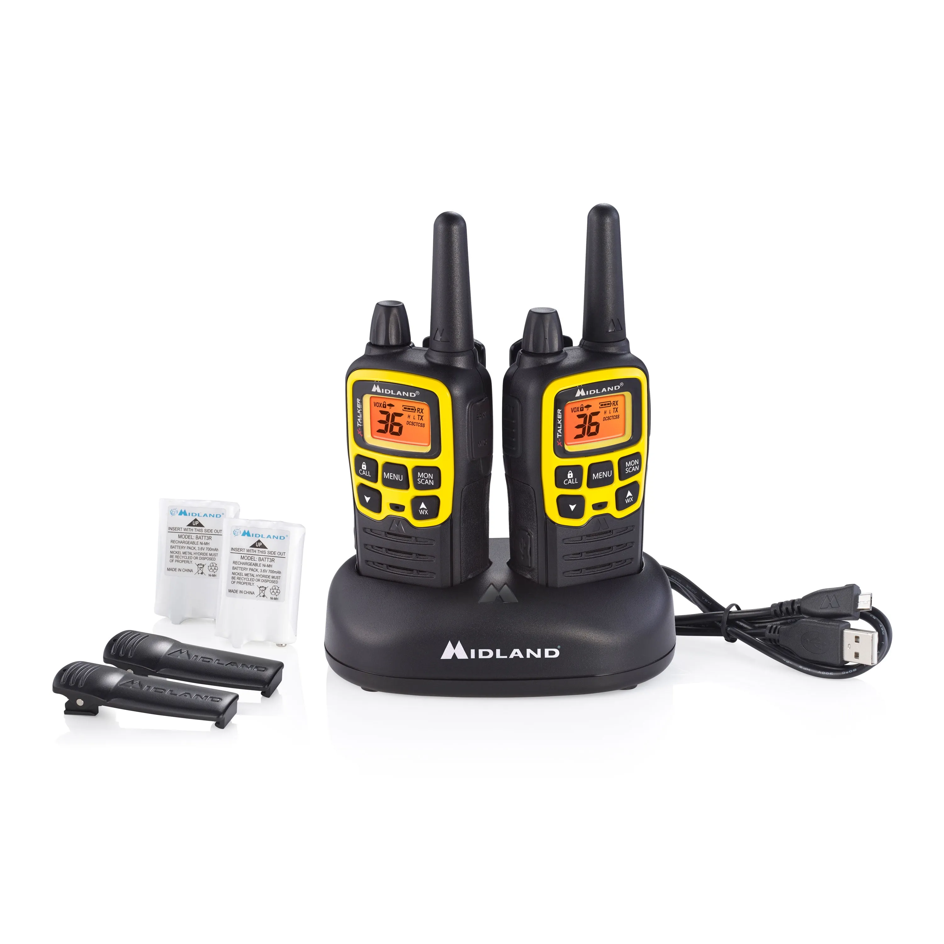 The T61 X-TALKER Two-Way Radios are designed for communication over a range of up to 32 miles, making them perfect for outdoor adventures, events, or emergencies. The radios come with a rechargeable NiMH battery and a convenient desk USB charger for easy charging.