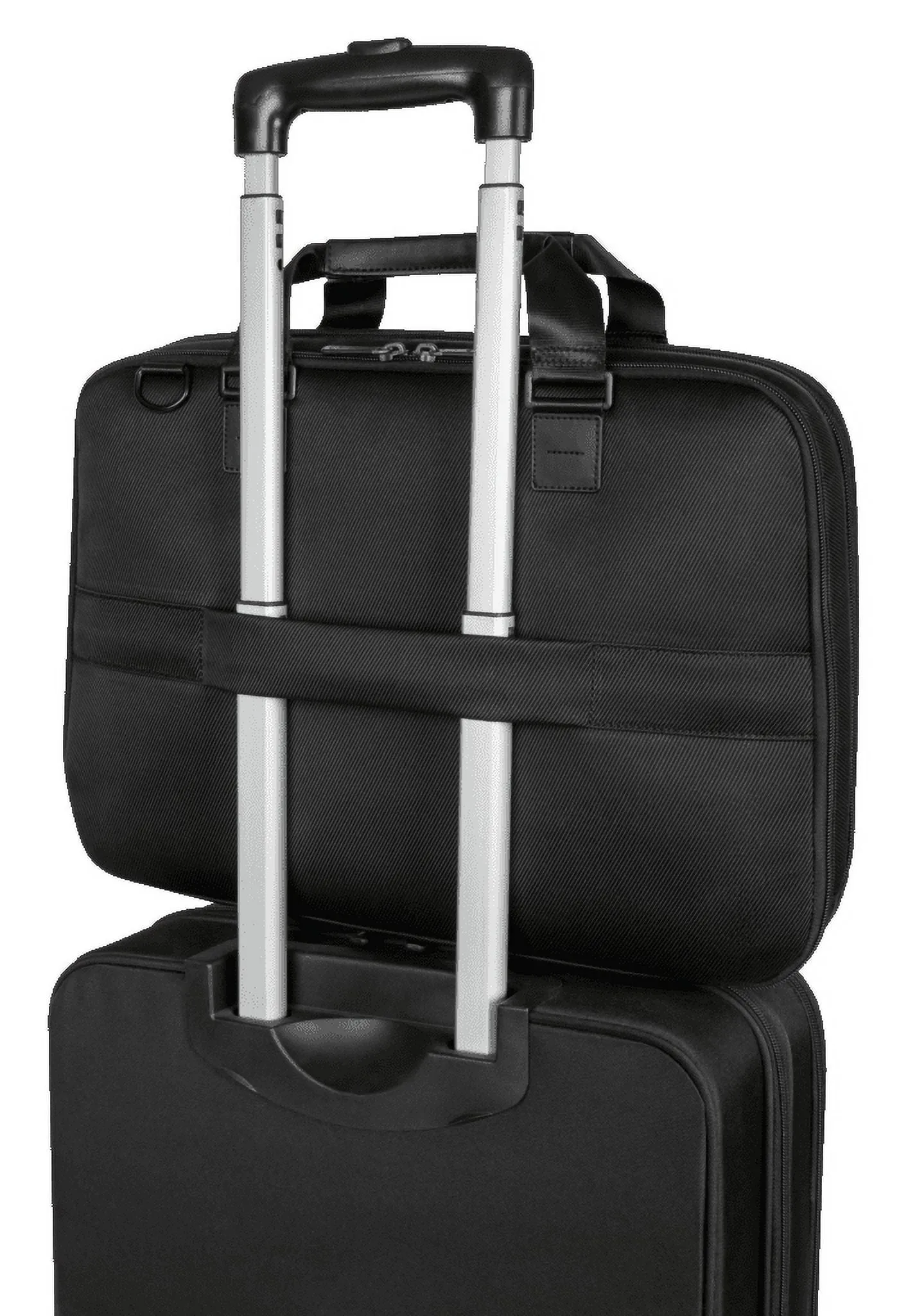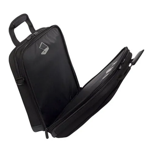 This 15.4'' case splits down the middle, isolating the laptop onone side to allow for clear x-ray scanning. The Zip-Thru Mobile Elite is lightweight, offers padded nylon handles, and includes a non-slip padded shoulder strap and trolley strap for attachment to rolling luggage.