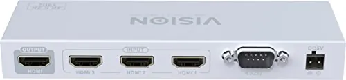 The Vision Techconnect 3-Port HDMI Switcher is a professional-grade device designed to manage multiple HDMI sources effortlessly. With RS-232 and IR remote control support, it offers convenient operation for various setups.