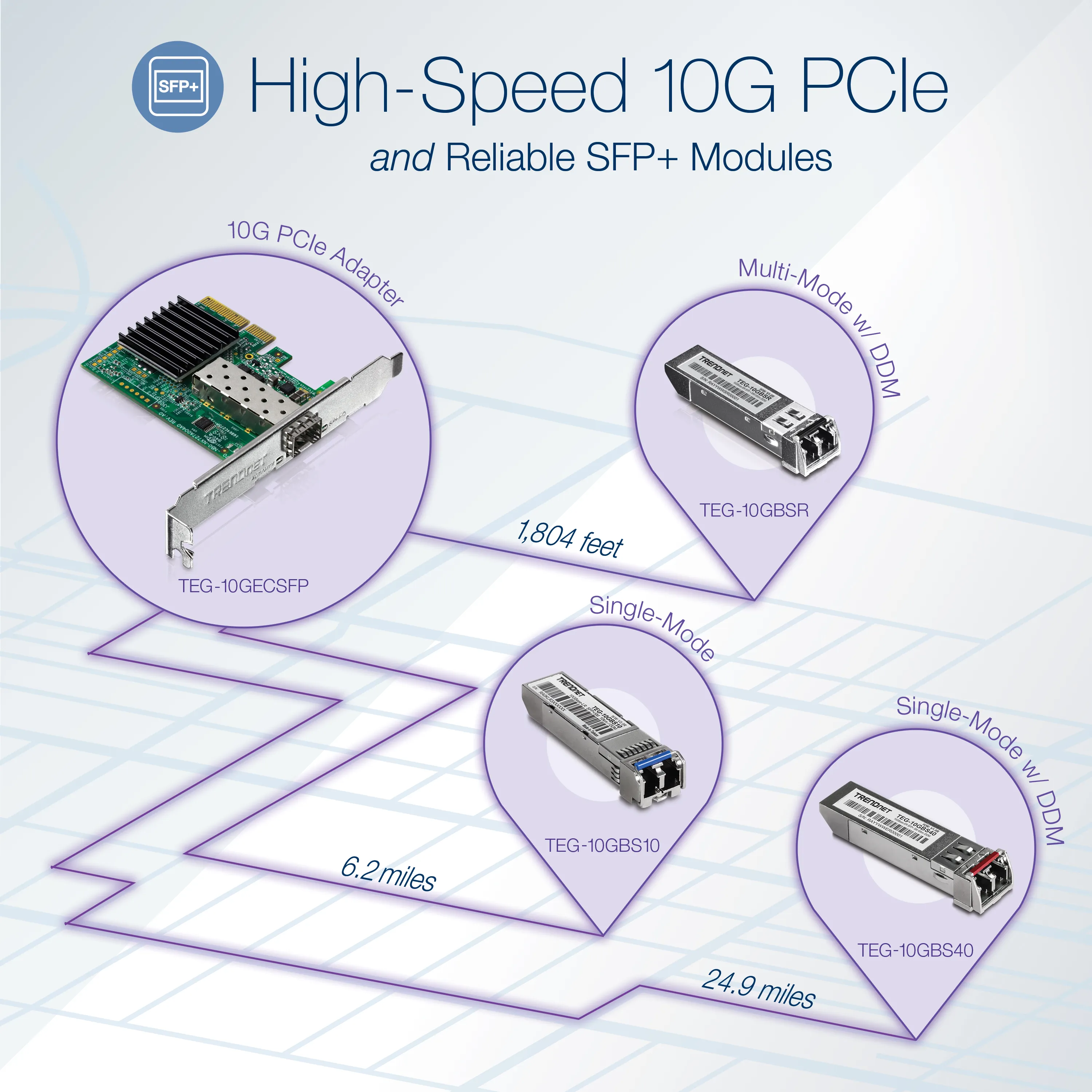 TRENDnet 10 Gigabit PCIe SFP+ Network Adapter - PCI Express 2.0 x4 - 1 Port(s) - Optical Fiber