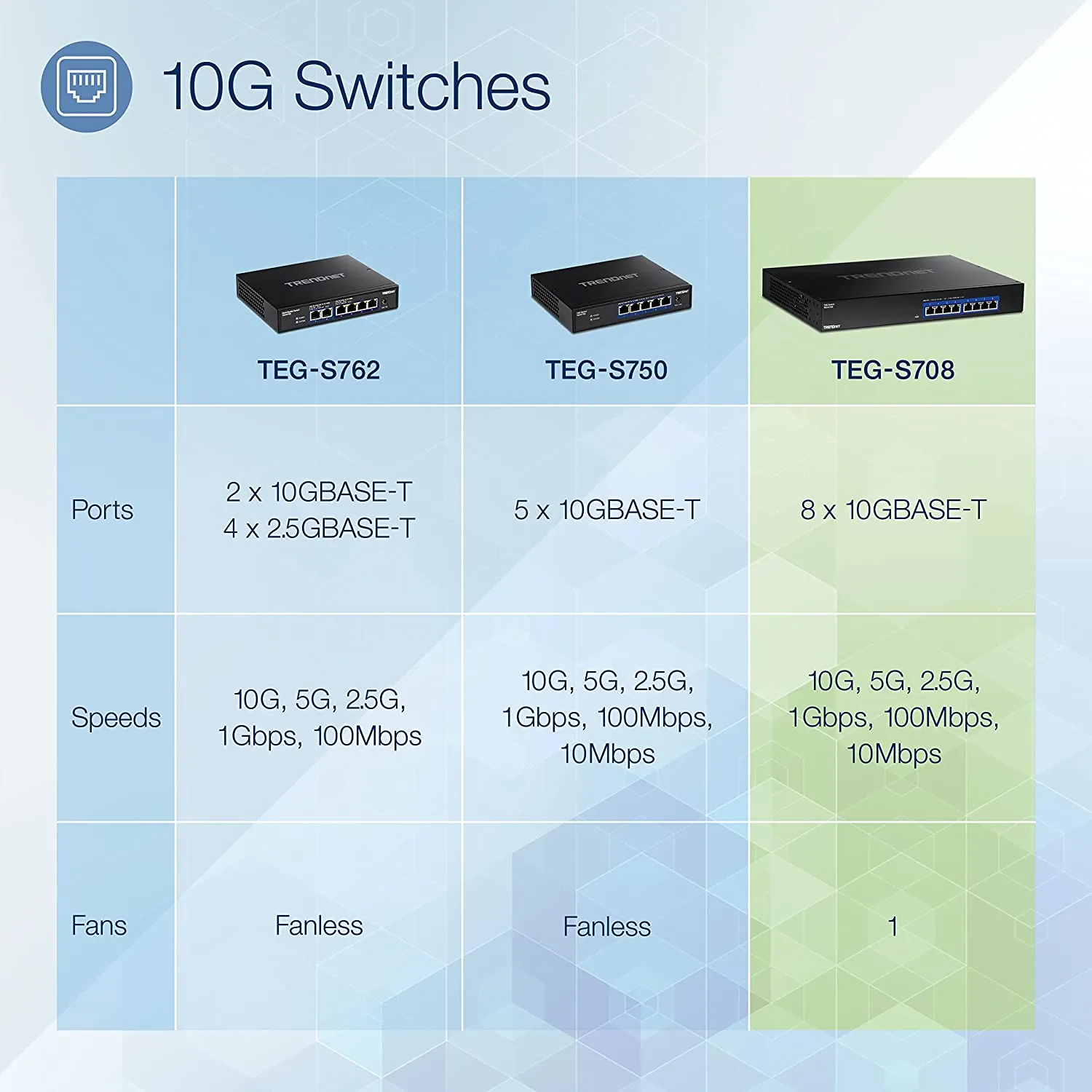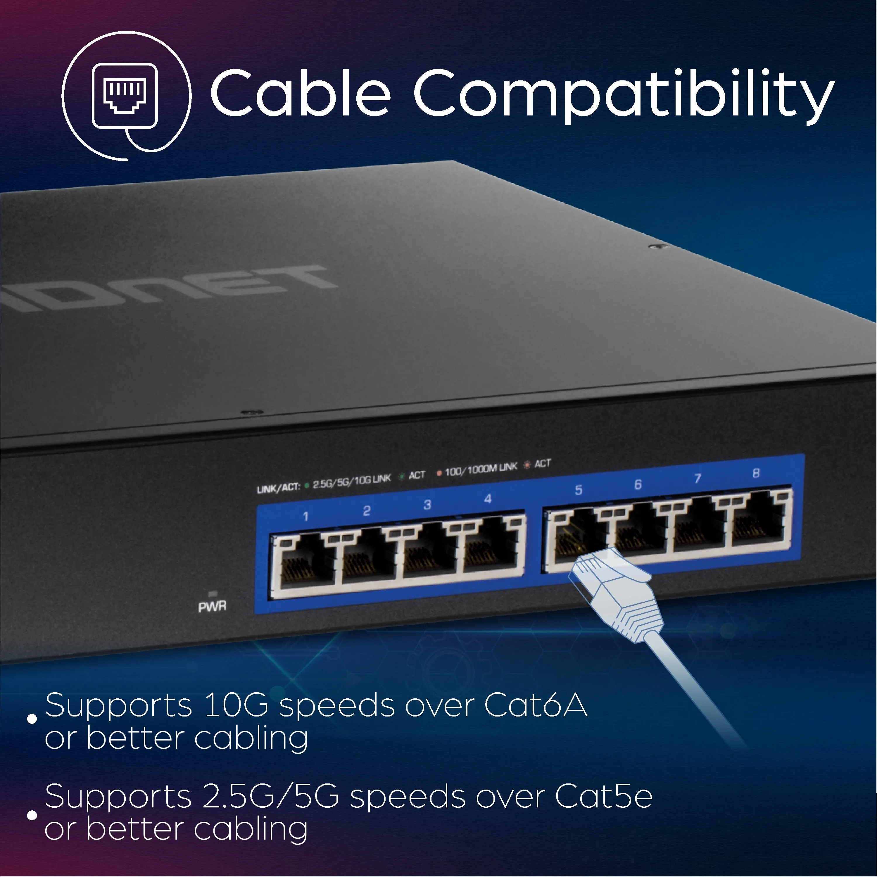 • 8 Ports supporting 10G, 5G, and 2.5G speeds
