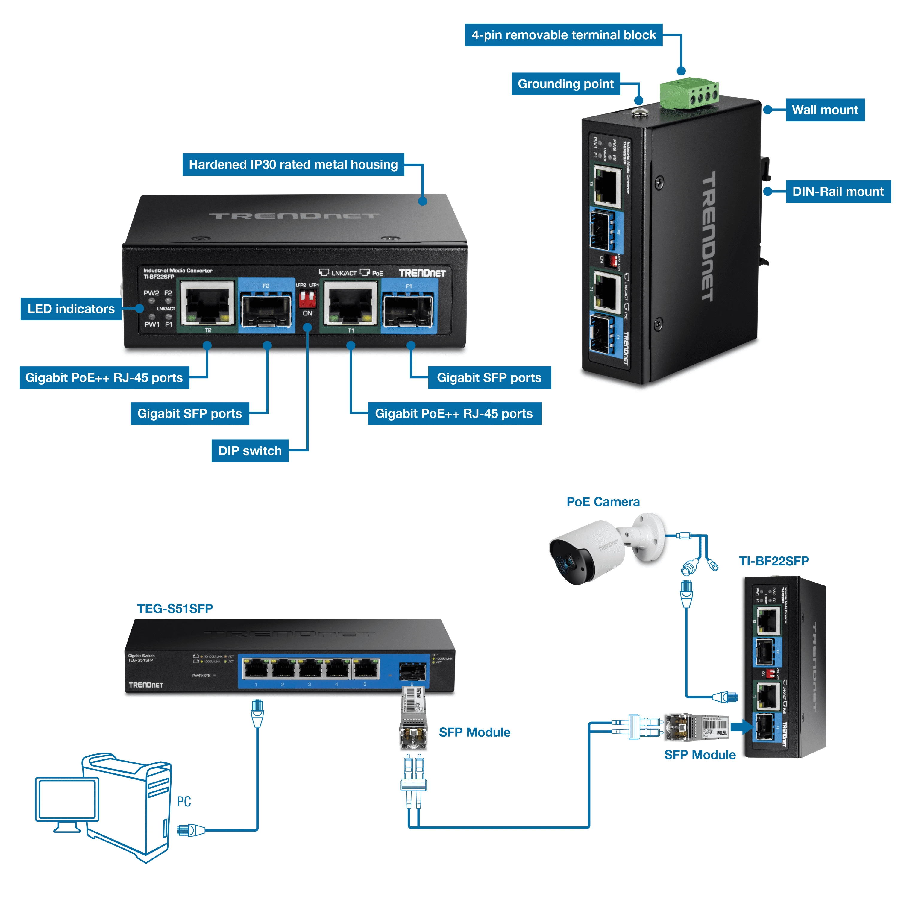 With a durable construction suited for industrial environments, this media converter guarantees reliable performance and flexibility in network expansion.