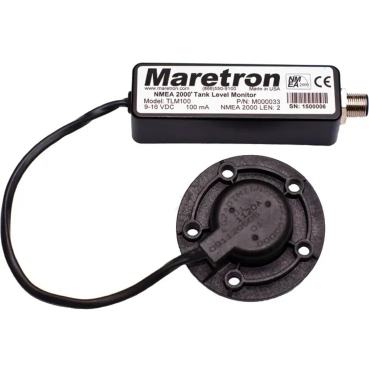 The Maretron TLM150 Ultrasonic Tank Level Monitor is an advanced solution for monitoring gasoline tank levels using ultrasonic technology. It seamlessly transmits data over the NMEA 2000 network, allowing you to view gasoline tank levels on any compatible display, such as the Maretron DSM250, throughout your vessel.