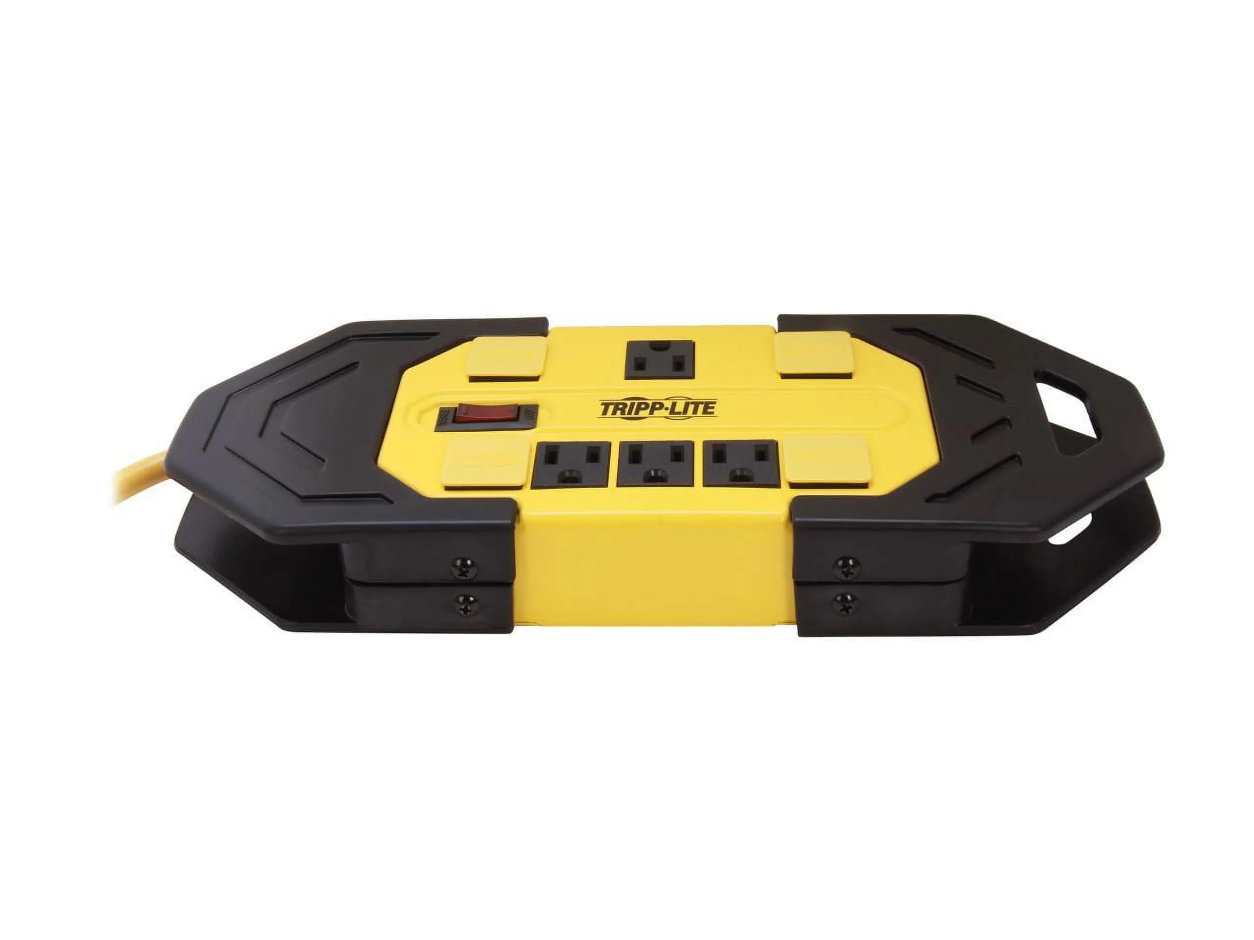 Safety power strip features eight outlets that distribute AC power to a wide range of power tools, pumps, machinery, air compressors and more. Convenient transformer outlets accommodate multiple transformers without blocking other outlets. 15' grounded cord with an integrated, cord clip reaches distant outlets. GFCI plug protects you from electrical shock in wet or humid environments. Lighted on/off switch with an integrated 15-amp circuit breaker provides power control and overload protection over connected equipment. Safety covers shield unused outlets from debris and accidental contact. Rugged metal case stands up to the harshest environments for reliable use in any condition. Integrated keyhole slots on bottom panel provide convenient wall/desk mounting.Tripp Lite Safety Power Strip 120V 5-15R 8 Outlet Metal 15' Cord OSHA