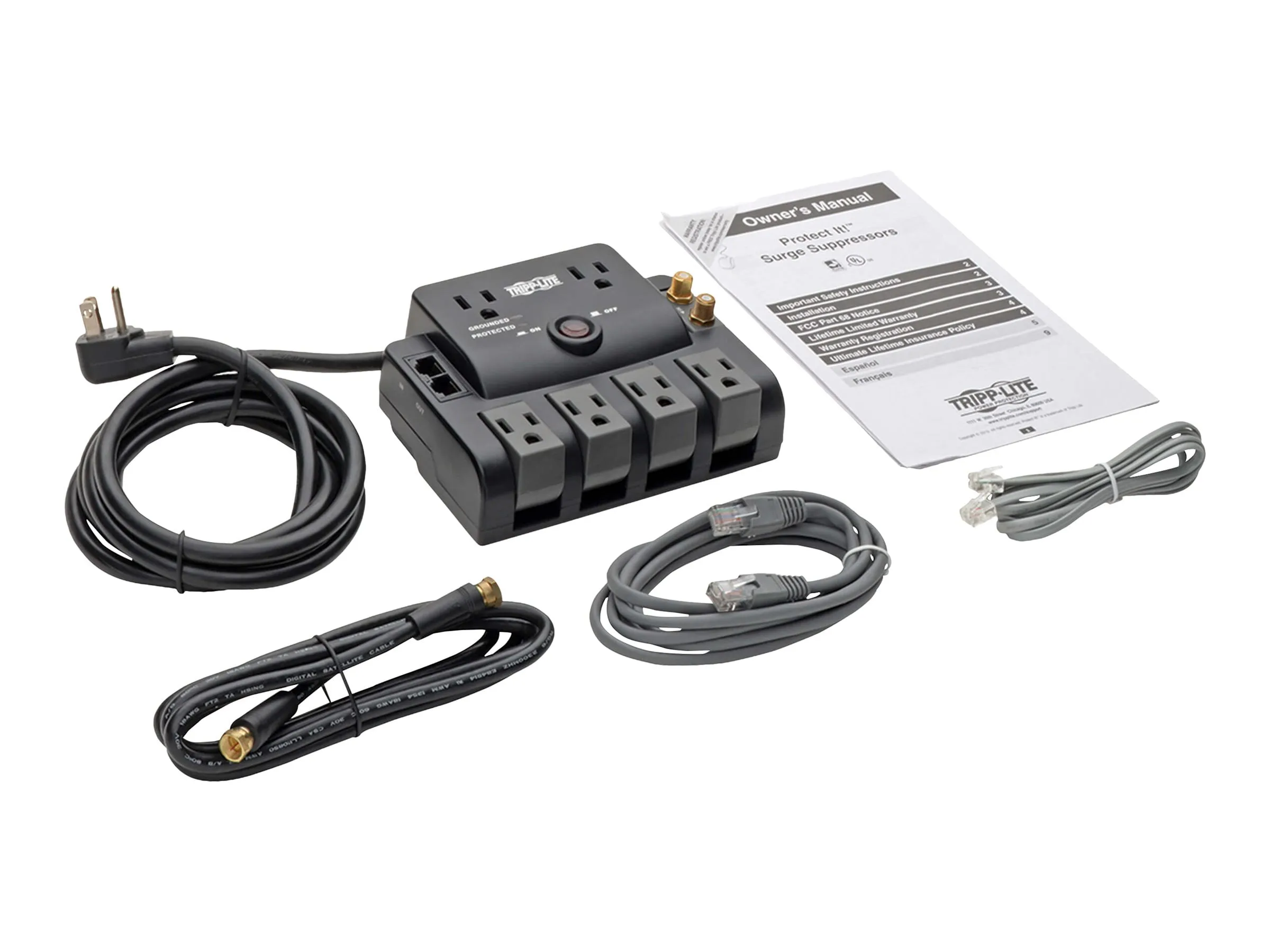 Tripp Lite Surge Protector 120V 6 Outlet Rotating RJ11 Coax 6ft Cord