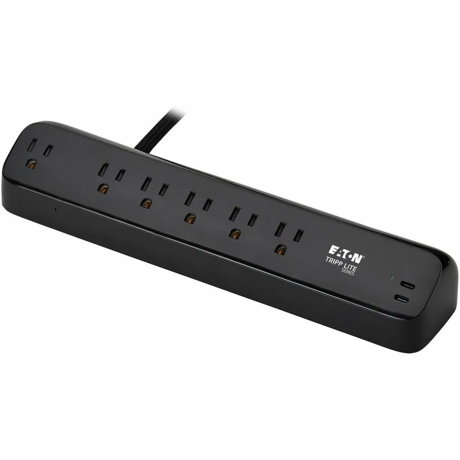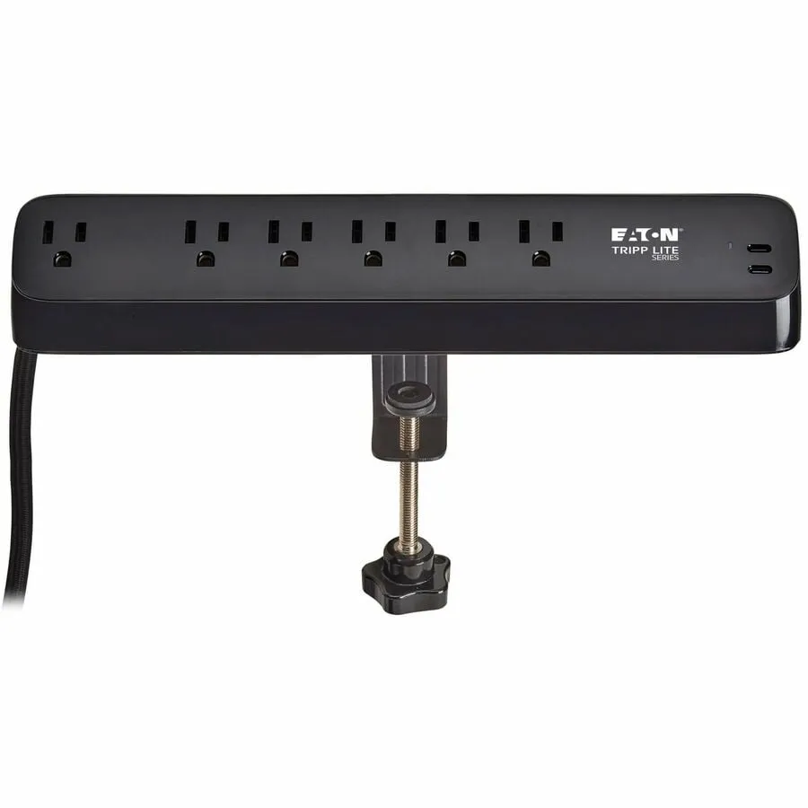 Eaton Tripp Lite Series 6-Outlet Surge Protector 2 USB-C Ports 5-15R Outlets 900 J 30W PD Desk Clamp 10ft Cord Black