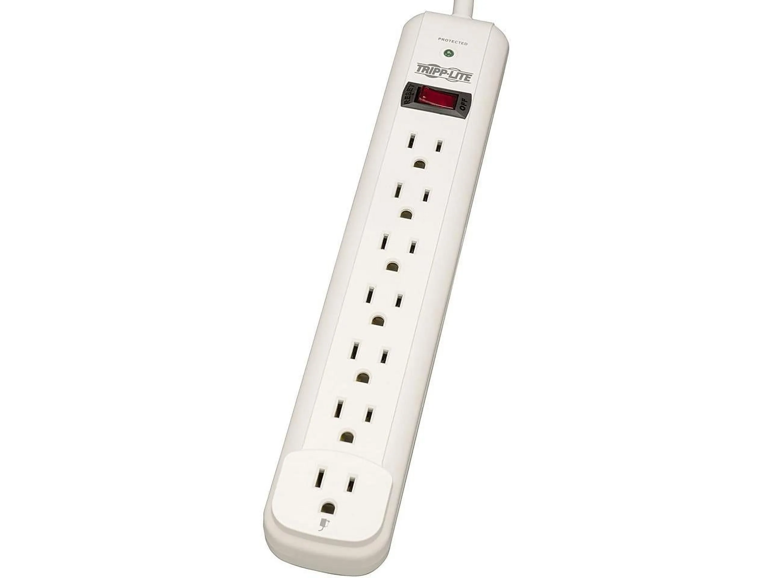 Marketing Information:Surge suppressor offers economical AC surge suppression for protection of workstations, desktop PCs, telecom systems and other sensitive electronics. AC surge suppression shields connected equipment from damage and performance problems due to transient surges. The TLP725 offers 7 total outlets, 25' cord and diagnostic LEDs to confirm outlet grounding and surge suppression status. Built-in power switch with integrated 15 amp circuit breaker offers power control and overload protection over all outlets. AC suppression rated at 1080 joules shields equipment from surges and line noise. Fail-safe thermal fusing protects against fire and other damage in the event of an extreme, extended overvoltage or surge condition. White housing with keyhole mounting slots and one designated transformer plug outlet offer convenient protection of desktop computer equipment and accessories.