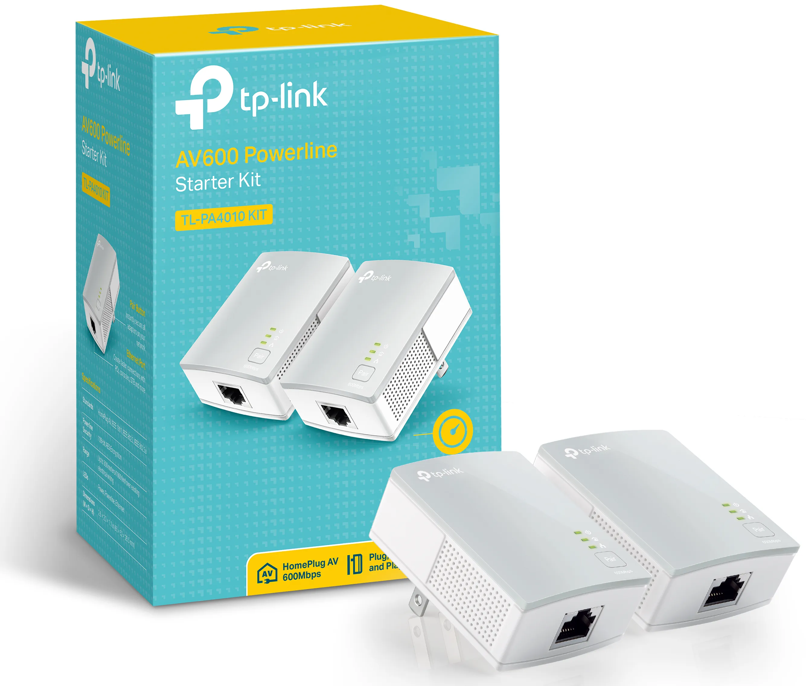 The TP-Link TL-PA4010KIT AV500 Nano Powerline Ethernet Adapter Starter Kit provides users with stable, high-speed data transfer rates of up to 500Mbps. It enables heavy-bandwidth applications like HD streaming, on-line gaming and large file downloading, turning your home into a robust and high-speed network. The Ethernet adapter kit has easy plug and play operation with no configuration needed. With its new ultra-compact housing design, it blends in with most power outlets.