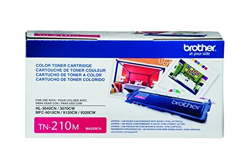 Standard yield magenta toner cartridge for use with brother hl-3040cn, hl-3045cn, hl-3070cw, hl-3075cw, mfc-9010cn, mfc-9120cn, mfc-9125cn, mfc-9320cw, mfc-9325cw. This is a OEM COLOR TONER BROTHER brand Toner Cartridge (SD MAGENTA TONER) that works with the following printers / machines (HL-3040CN, HL-3045CN, HL-3070CW, HL-3075CW, MFC-9010CN, MFC-9120CN, MFC-9125CN, MFC-9320CW, MFC-9325CW). Product Features: Compatible with: Brother HL-3040CN, HL-3040CW, HL-3045CN, HL-3070CW, HL-3075CW, MFC-9010CN, MFC-9120CN, MFC-9125CN, MFC-9320CN, MFC-9320CW, MFC-9325CW Duty Cycle: Up to 1400 pages ISO/IEC 19798 Printing Color: Magenta Printing Technology: Laser Product Description: Brother TN210M - magenta - original - toner cartridge Product Type: Toner cartridge Key Selling Points:, Brother Genuine TN210M Magenta Toner Cartridge., Professional color laser print quality you can consistently rely on for 1,400 pages*. (*Approx. toner cartridge yields in accordance with ISO/IEC 19798 (letter/A4))., Intelligently engineered to work in seamless unison with your Brother printer., Brother Genuine toner produces rich, vibrant prints that withstand the test of time., Brother offers an environmentally responsible way for customers to dispose of Brother Genuine cartridges. Visit www.brother-usa.com/Environment to learn more., For full product specifications see www.brother-usa.com Benefits of this product: Brother Genuine TN210M Magenta Toner cartridge delivers crisp, professional color laser output. STANDARD YIELD MAGENTA TONER. HL-3040CN, HL-3045CN, HL-3070CW, HL-3075CW, MFC-9010CN, MFC-9120CN, MFC-9125CN, MFC-9320CW, MFC-9325CW. OEM BROTHER Brand.