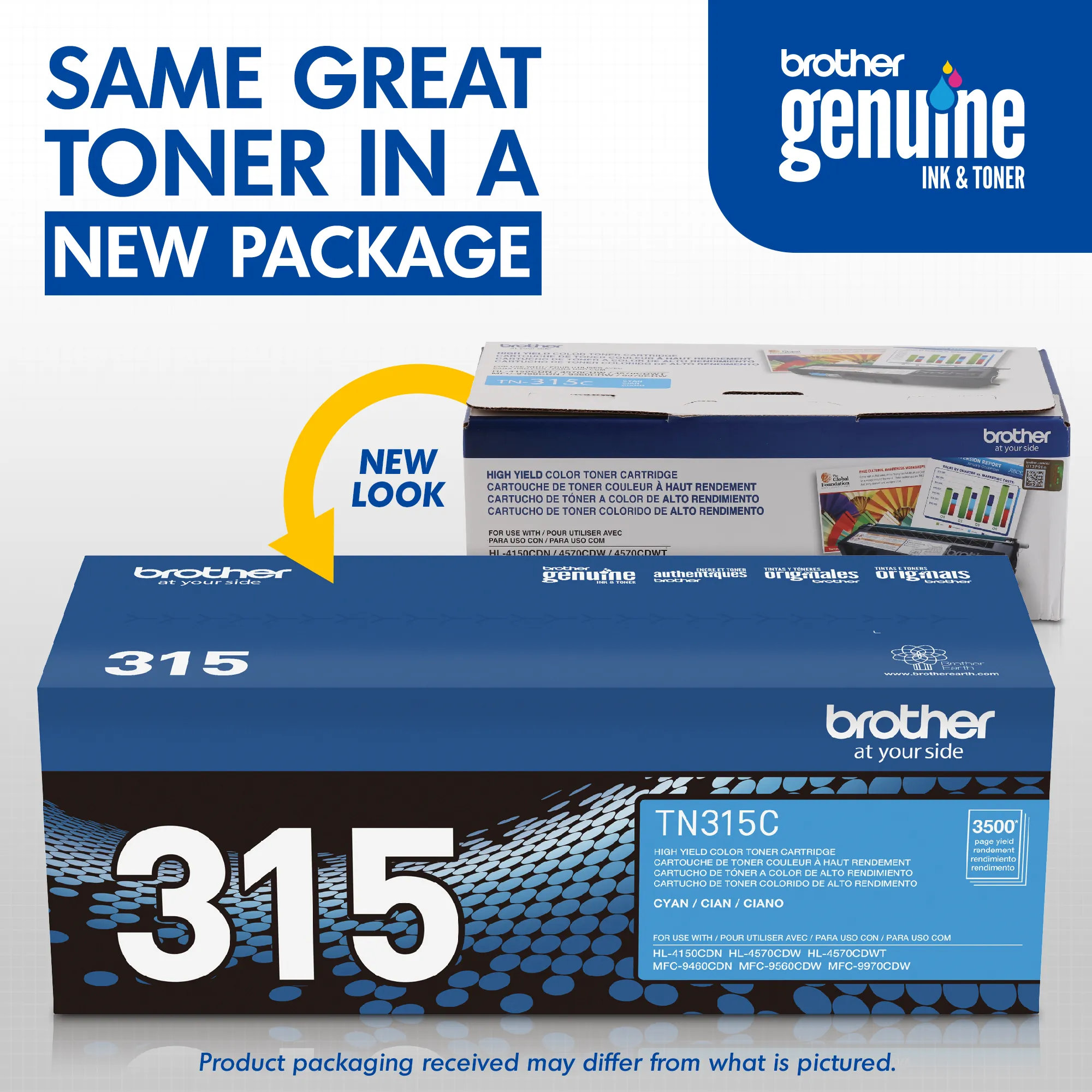 High-yield toner cartridge is designed for use with Brother HL-4150CDN, HL-4570CDW, HL-4570CDWT, MFC-9460CDN, MFC-9560CDW and MFC-9970CDW. All genuine Brother printer supplies are designed as part of an entire printing system to provide a superior degree of quality. Genuine Brother toner is delicately balanced to provide even flow and toner distribution. Color cartridge yields approximately 3,500 pages.